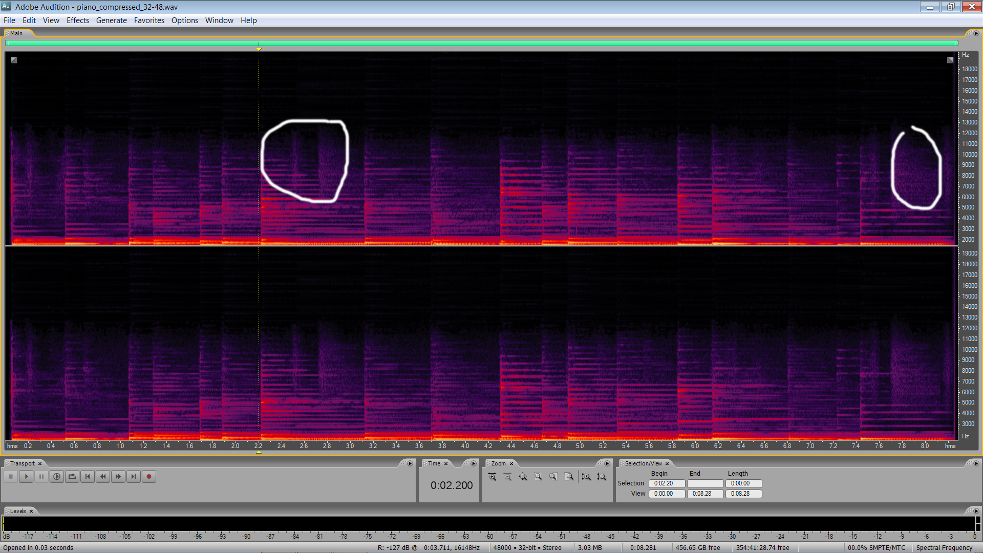 Никаких хрипов не слышу, слышу (и вижу в спектре) посторонние призвуки в диапазоне 6-12 кГц. Похоже на оплётку струны или резонирующую от игры хрень какую-то. Было в изначальной записи наверняка, компрессия лишь усиливает и выпячивает...
