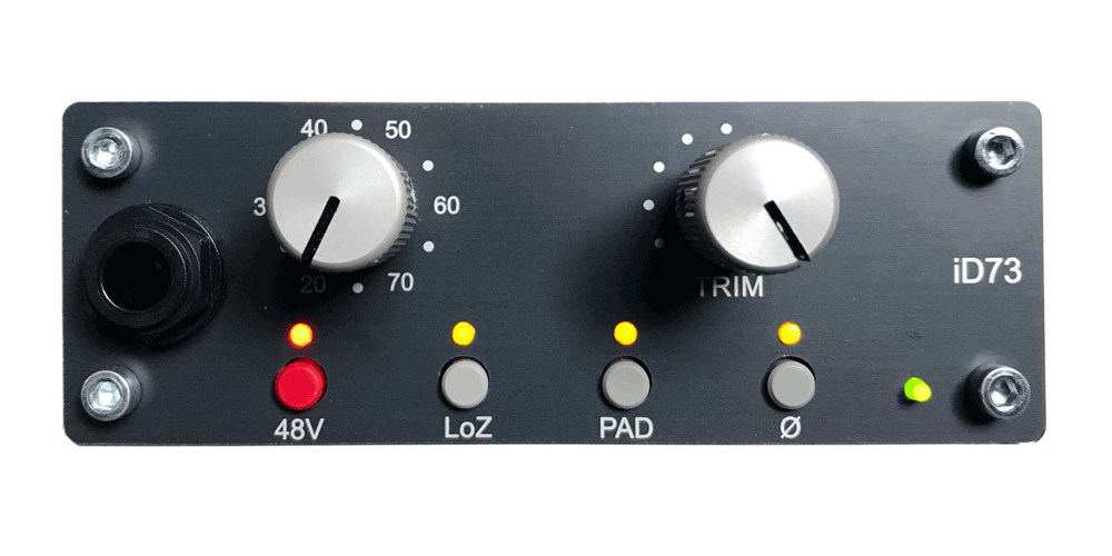 - Предусилитель iD73 (1073 без эквалайзера). Помимо микрофонного входа имеет высокоомный инструментальный вход на полевом транзисторе (FET).