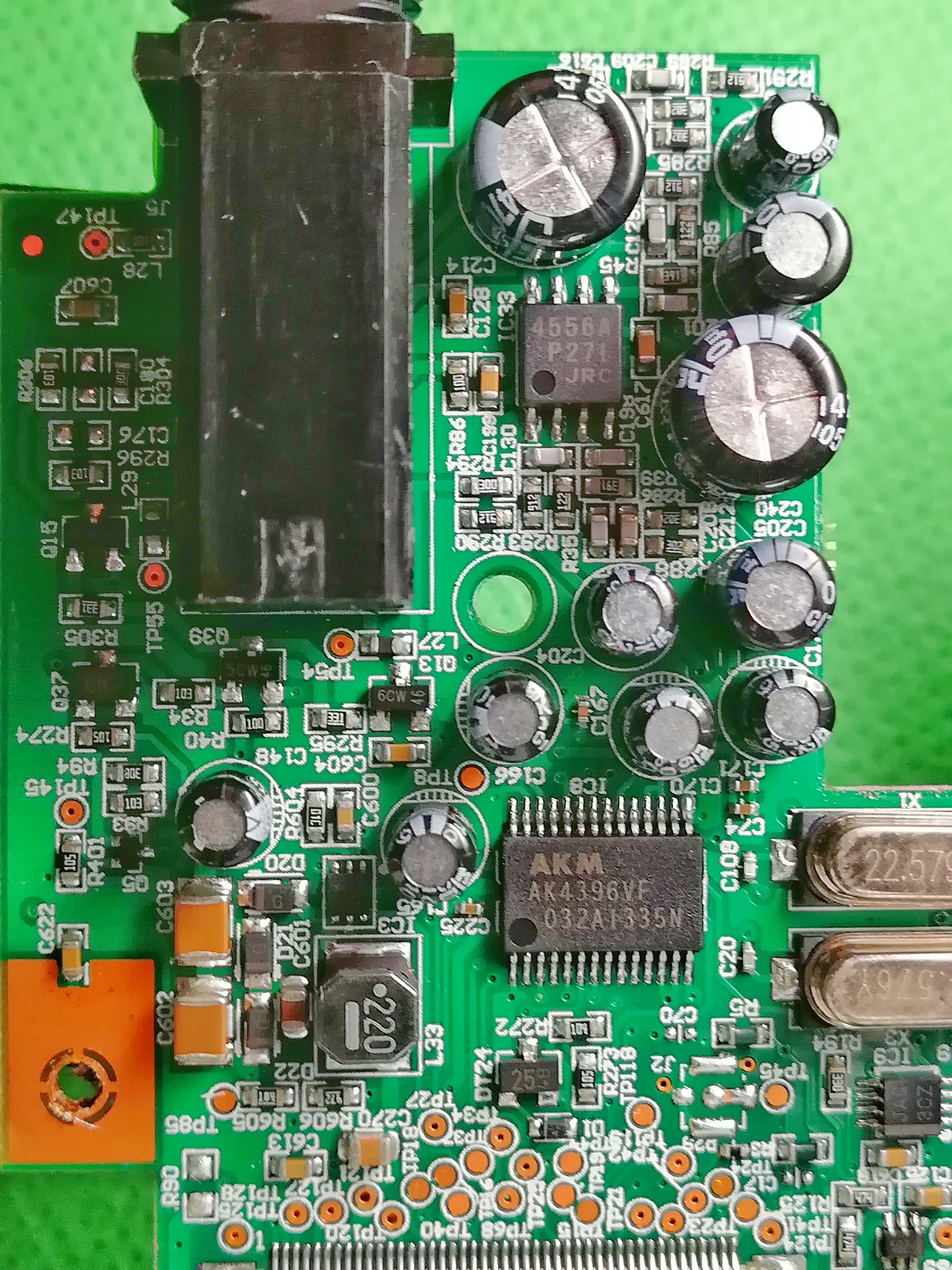 видимо отключается, либо весь аудиотракт включая цап, либо операционник, если он там есть (с этой стороны платы, вроде нет)