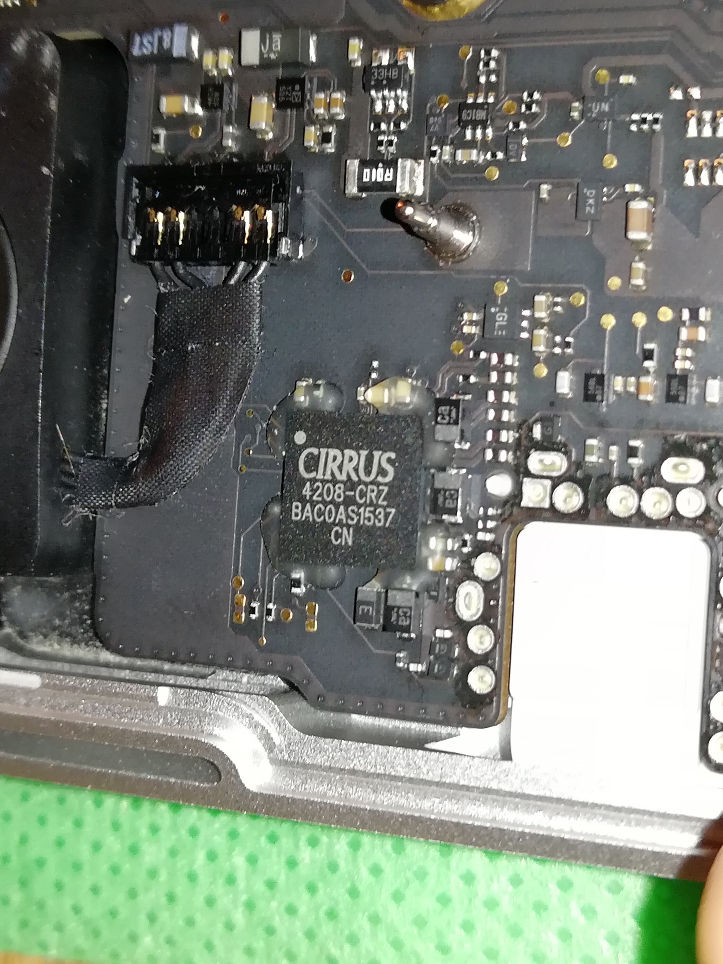 Чисто для информации, в макбуке, если звуковые программы не используются, то через некоторое время, шум пропадает, видимо отключается, либо весь аудиотракт включая цап, либо операционник, если он там есть (с этой стороны платы, вроде нет)
