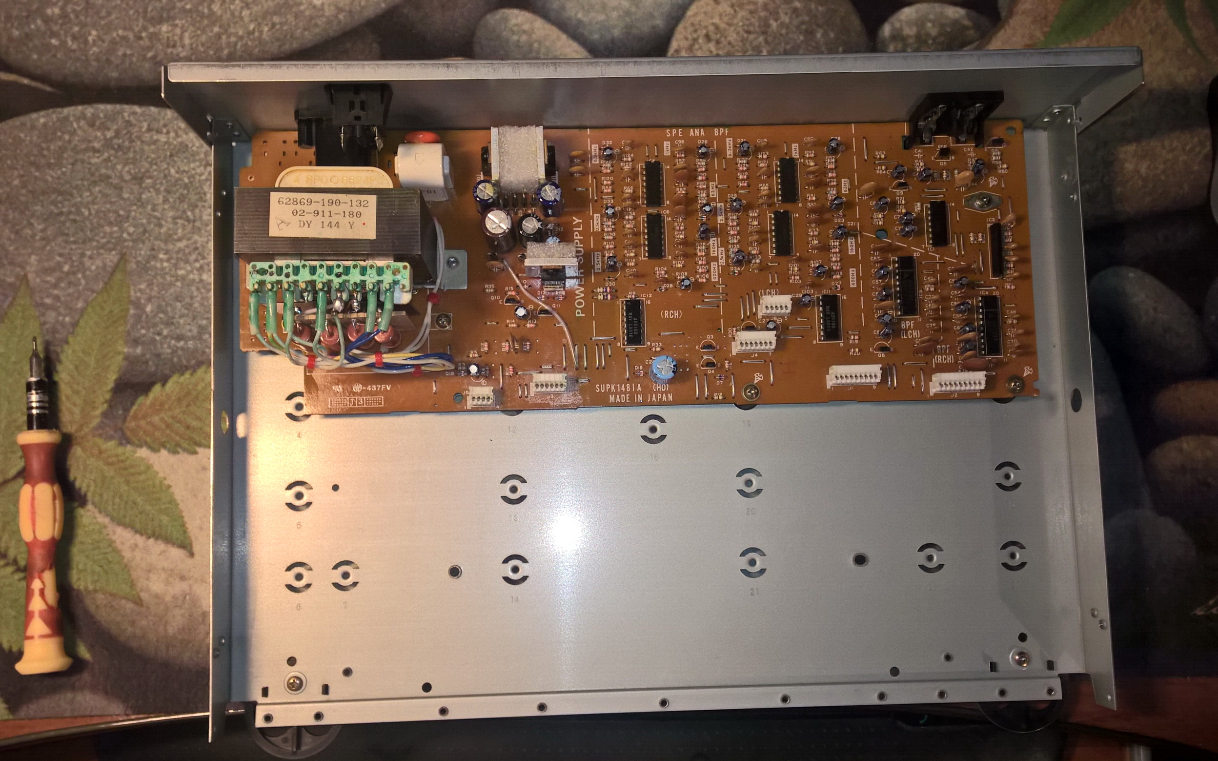 Рассчитанный на напряжение сети 100 вольт аппарат был убит включением в сеть 220 вольт. Не мной )) Я его нашёл на улице в паре с усилителем. Усил тоже пострадал, хоть и не так сильно, но это другая история. В общем у эквалайзера был сгоревший трансформатор и ещё кой-чего.