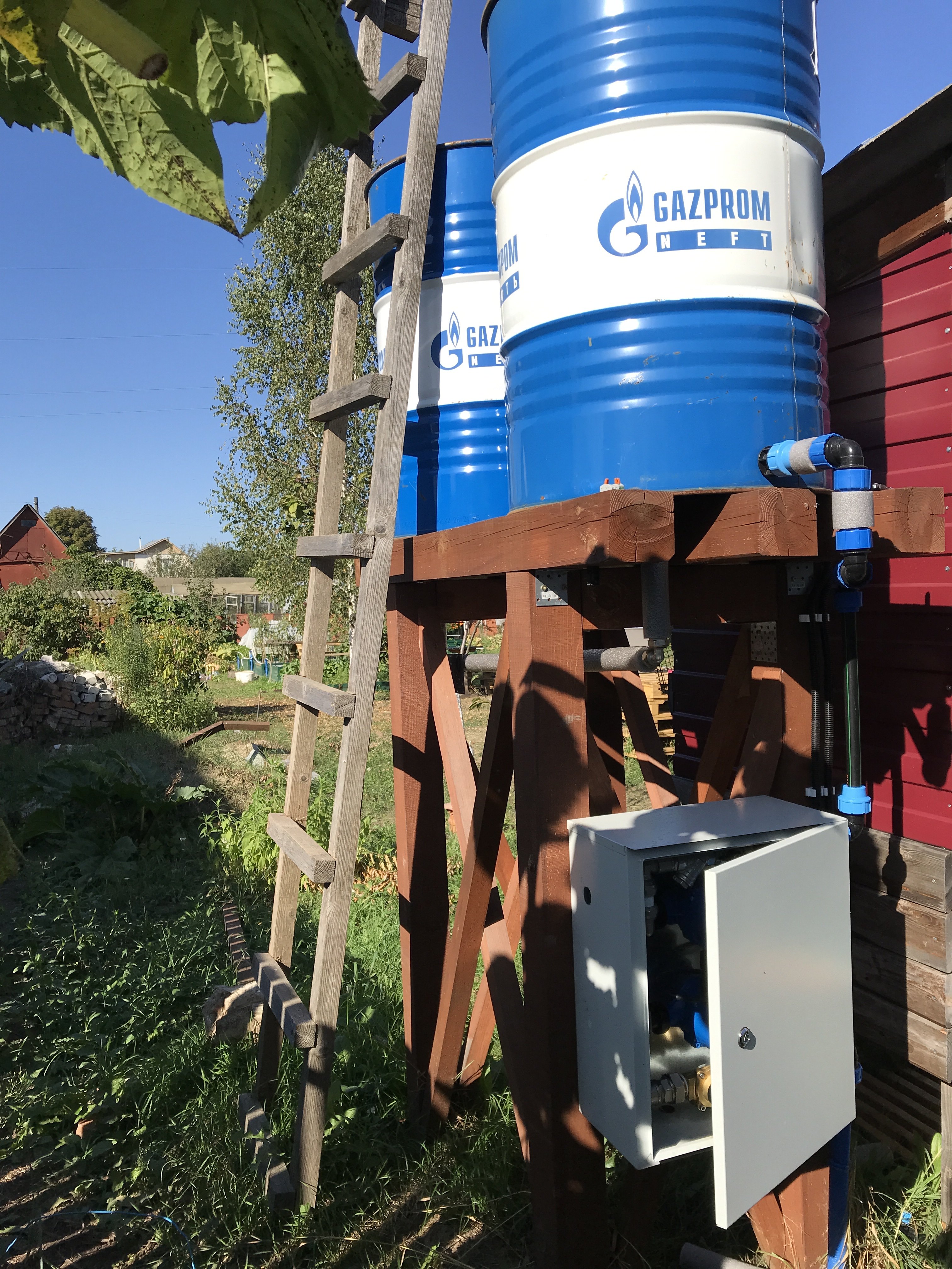Бочки - временное решение, в след. году заменятся на пластиковый бак.