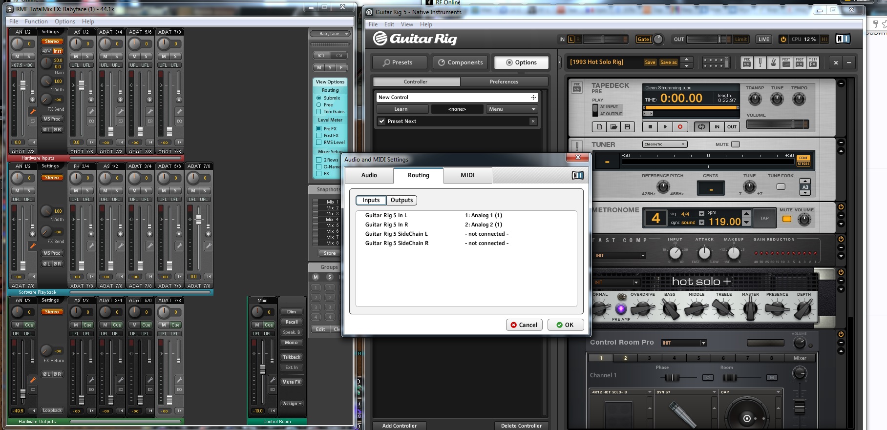 S soulew Active Member 14 Дек 2010 224 73 28 31 Дек 2015 #1 Не получается подключить гитару через бэбик и гитар риг? Может кто советом помочь новичку?) Вложения guitar + rme babyface.jpg 506,9 KB · Просмотры: 216