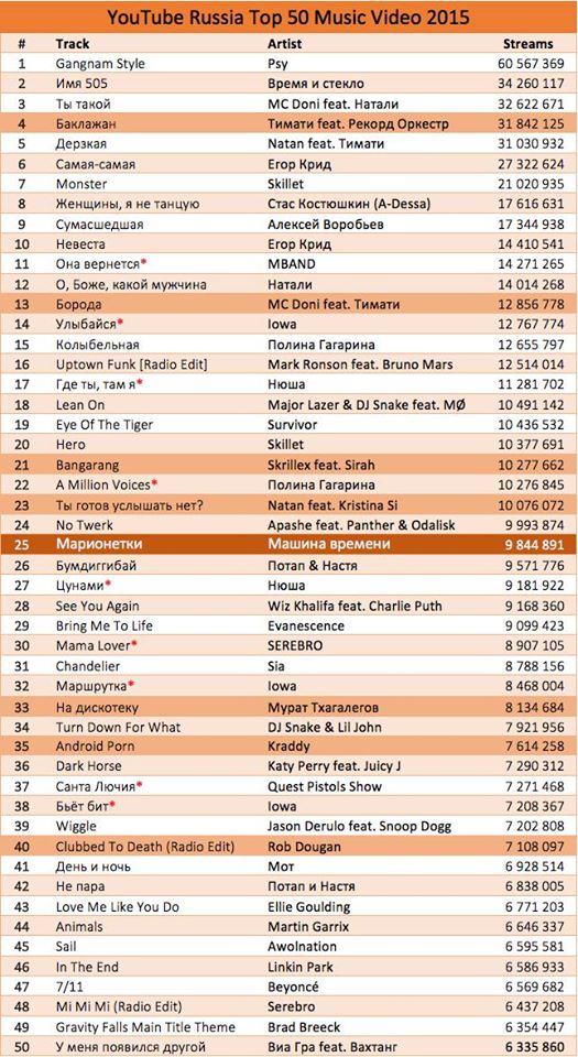 Выше вспоминали про Адель, так вот, если посмотреть чарты нашего ютюба и топхита - там нет ни одной баллады