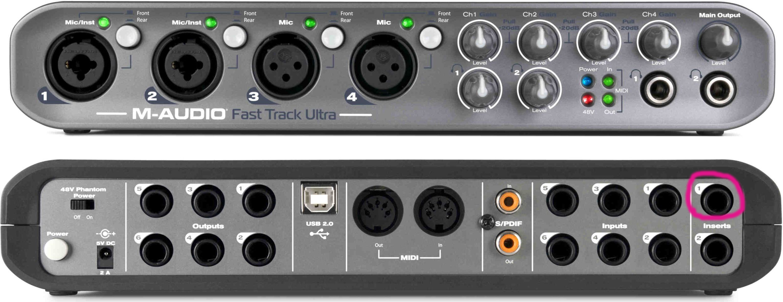 Теперь настраивайте преамп. Фантомное питание, гейн, индикация входа и т.д.