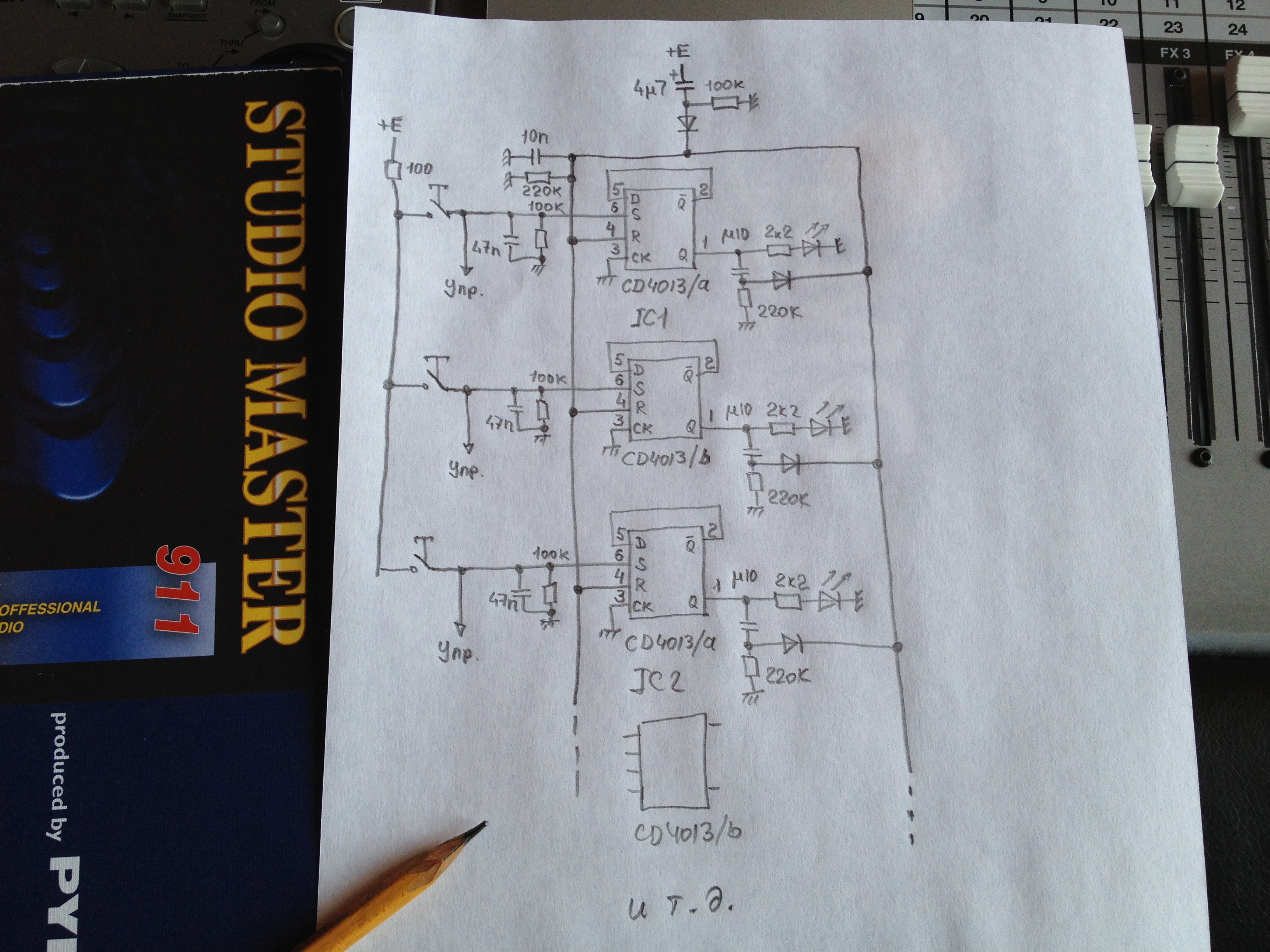 2) нумерация выводов вторых половинок 4013"b" неправильная, это я машинально наставил )) по даташиту посмотрите верную распиновку по вторым половинкам,