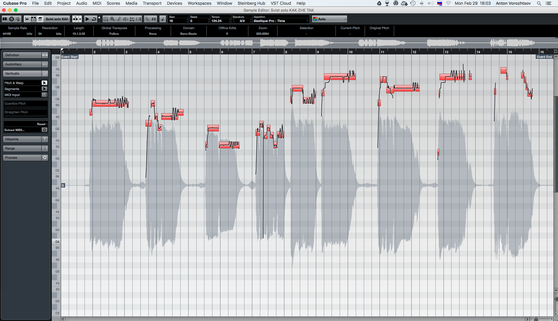 Ну раз уже потюненный свист есть) То мне остаётся только добавить, что VariAudio без проблем тюнит этот файл) Но некоторые ноты считываются не корректно, поэтому я бы использовал мелодайн)