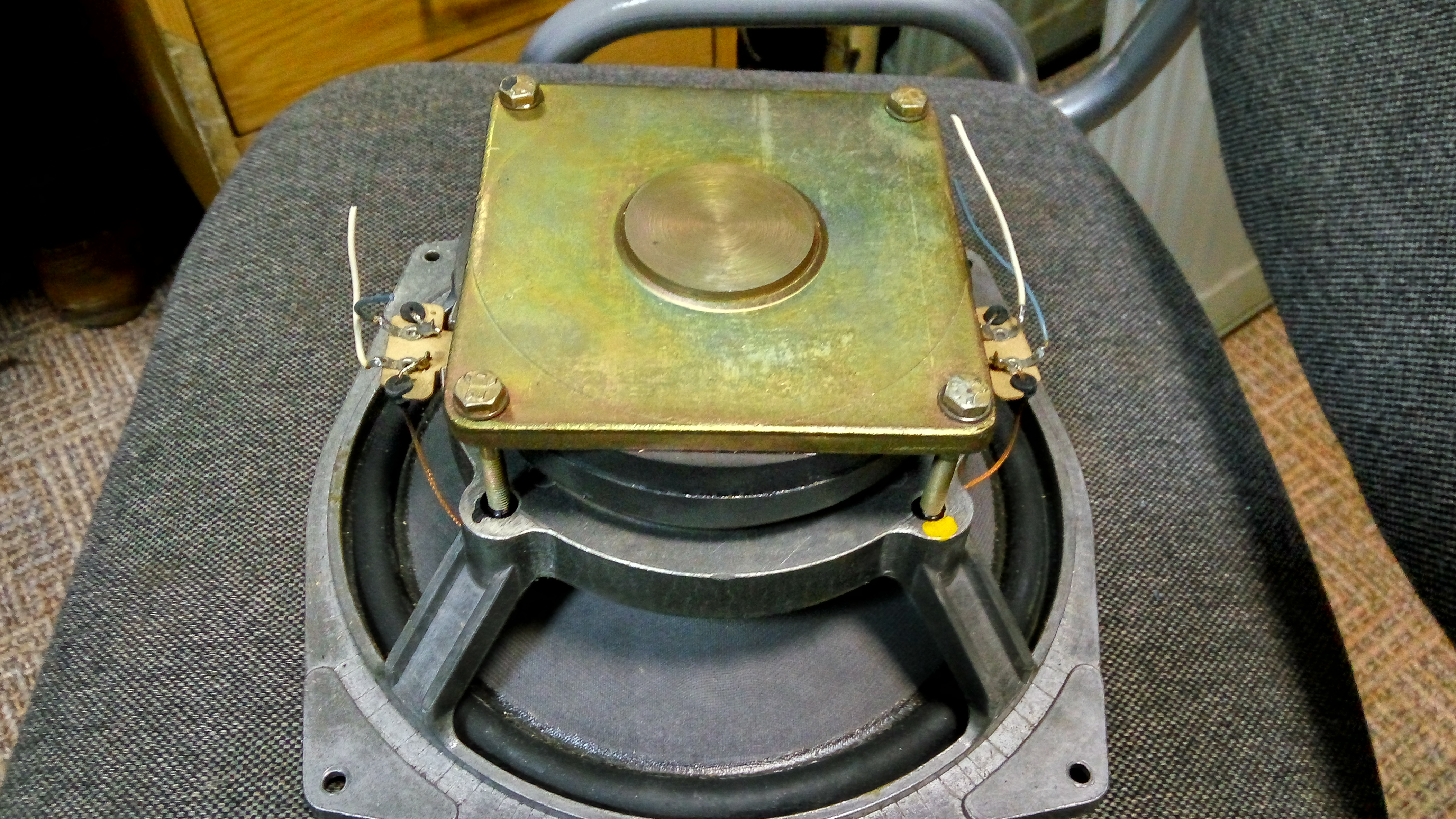 Нашел вот такую штуку. Диаметр 23 см. 2 катушки каждая по 8 ом. Думаю сделать закрытый Саб, сравнить при сведении с имеющимся ФИ. Но как рассчитать не Зная Марку динамика? Или генератором прогнать?