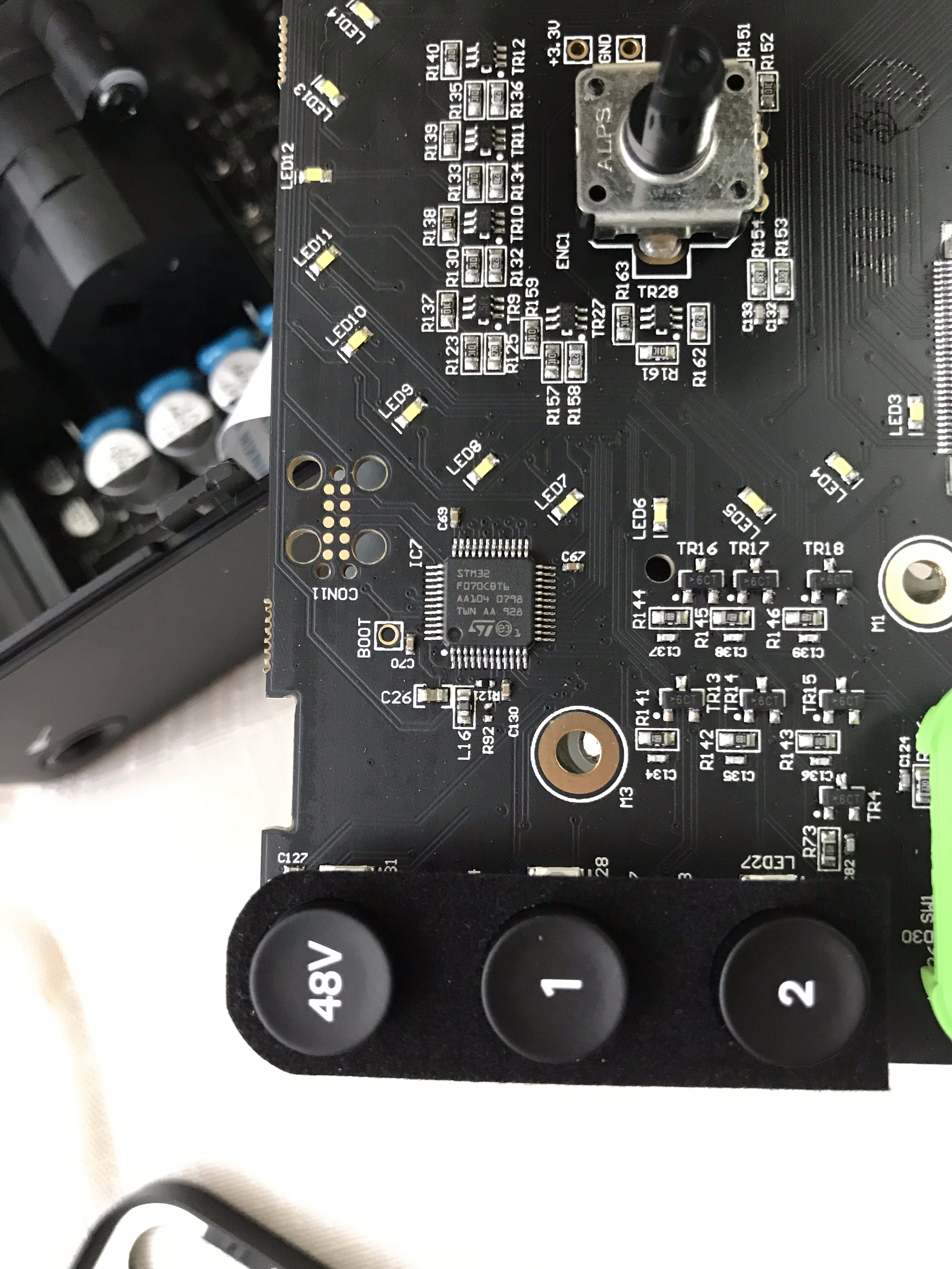 @AslashA , а не сфоткаешь ещё крупно под шлейфом предусилки на микрофонных входах для полной картины?