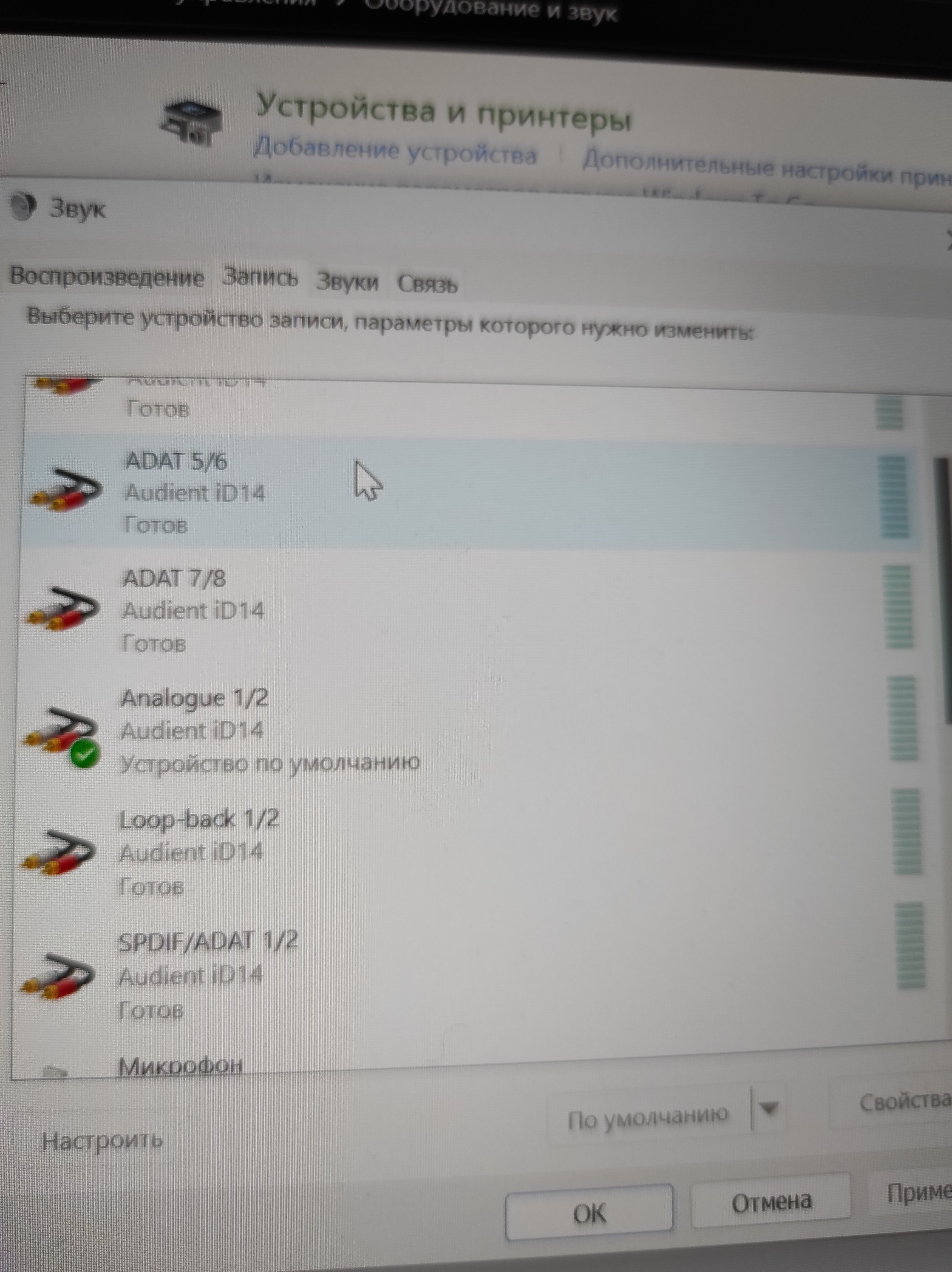 Выставляю вход 1-2 запись звука через микрофон ни в каких приложениях не идёт, микрофон rode nt1-a