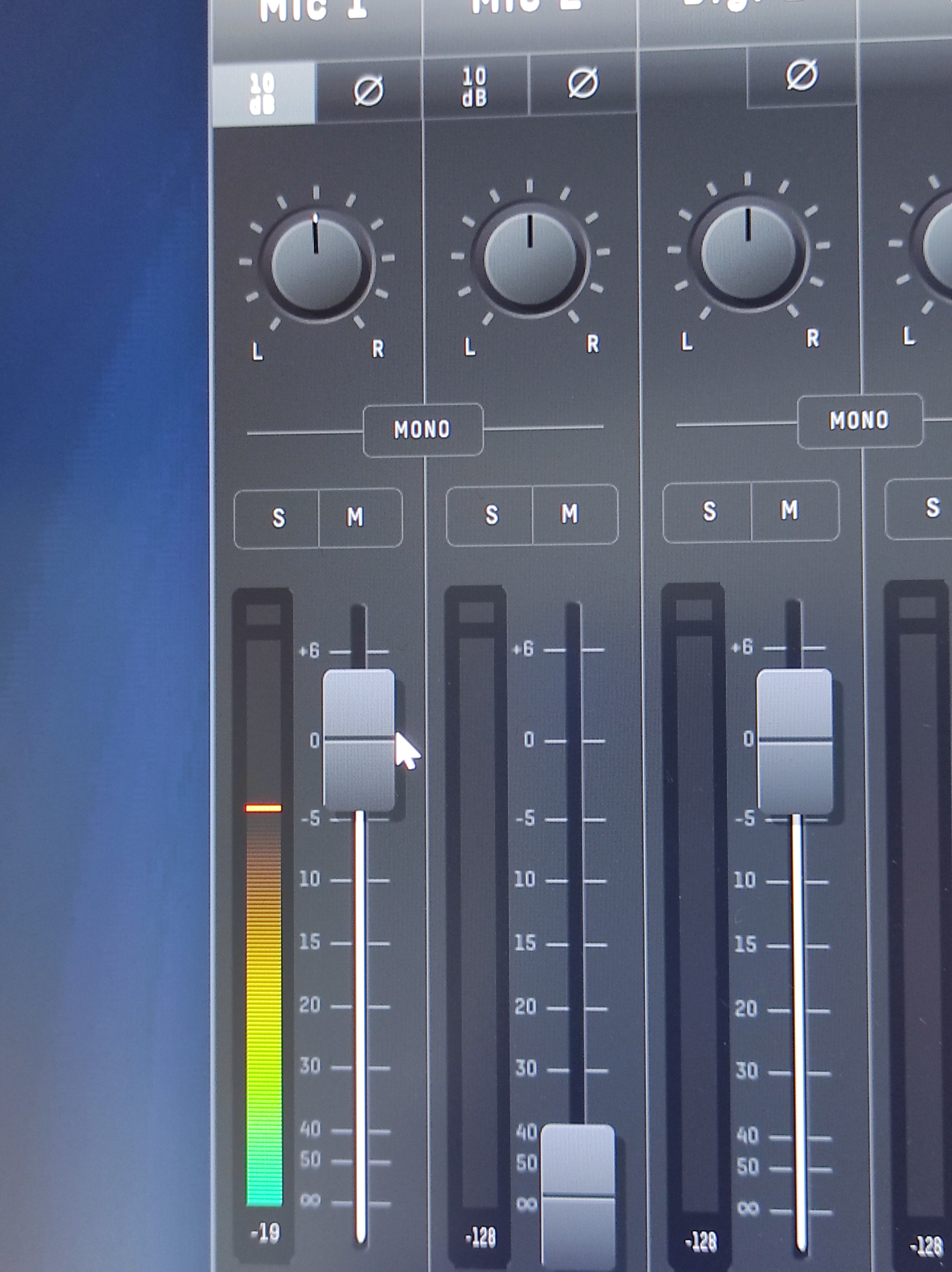 Помогите, пожалуйста, с настройкой микрофона, звук очень тихий, еле еле вообще записывает, что я не так выставил? Фантомное питание включено, гейн на максимум , но даже громкие звуки еле еле улавливаются