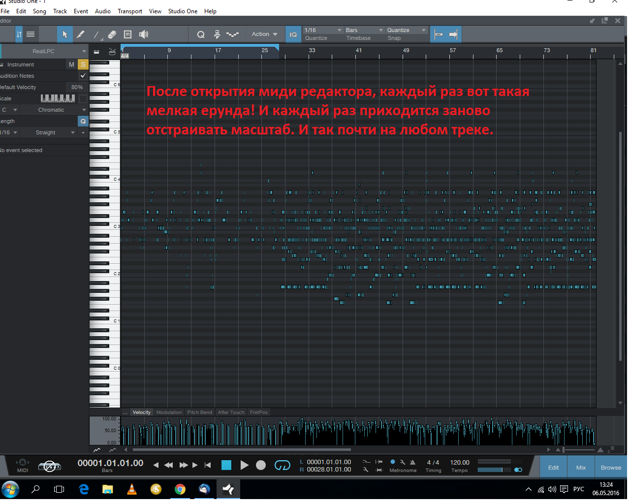 У меня вопрос по работе миди-редактора Studio one 3, но рассматриваемая мной проблема почему-то наблюдается во многих других программных секвенсорах.