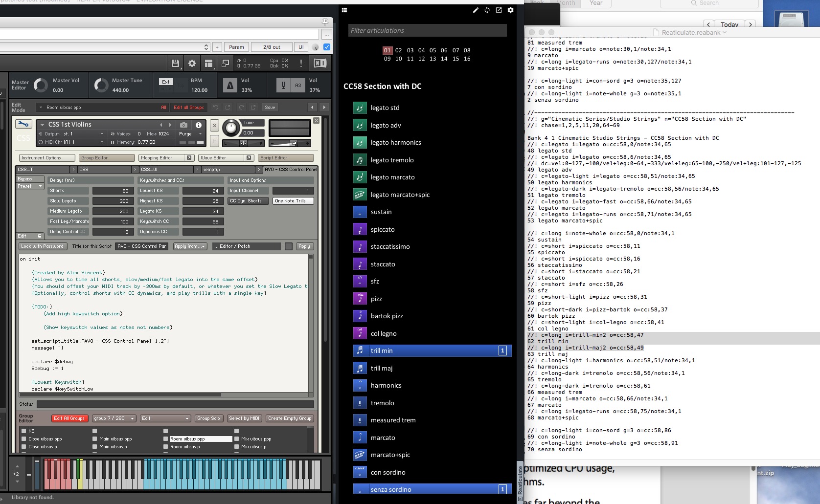 @Vosk, я имел в виду исключительно короткие артикуляции типа sfz, staccato, staccatissimo, spiccato, pizzicato, bartok snap и col legno - там между ними по-умолчанию переключение не только на keyswitch и cc58, но и cc1. Вот этот cc1 я и отключил, иначе мешает. Вы об этом тоже, или я не понял?