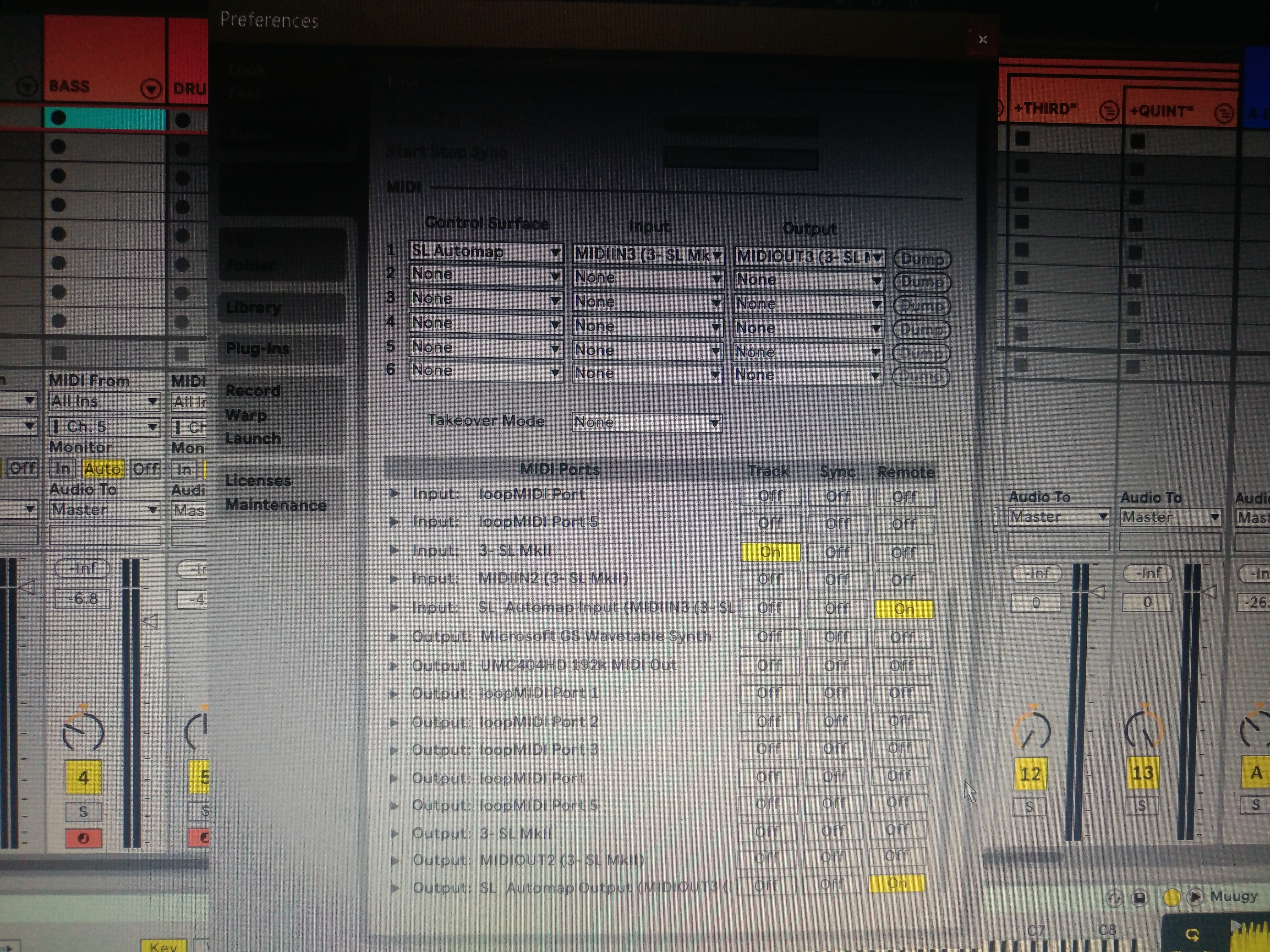 Не совсем понятны вопросы: если речь о шаблоне Automap, то он находится там-же, где и остальные (выбор открываются нажатием на Speed dial). Настройки миди - стандартные: клавиатура и педали на In Port1 (галочка на крайнем левом столбце), a все остальные элементы управления на Port 2 (для шаблона Ableton) и на Port3 (для шаблона Automap) - галочки в крайнем правом столбце). В секции Out достаточно только две галочки в крайнем правом столбце против Port2 и Port3. Выбрав в верхней части кастомные шаблоны для соответствующих разных портов, не забудьте деактивировать нативный скрипт...