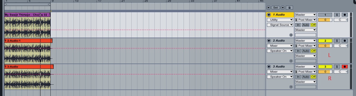 Пропускаю сигнал через внешний одноканальный проц, поочередно записывая левый/правый канал источника. И не понятно, как в Ableton склеить их вместе, чтобы получилось стерео. Выходит либо моно, либо один канал. Может есть где-то кнопка реверса каналов? Ничего не нашёл такого(