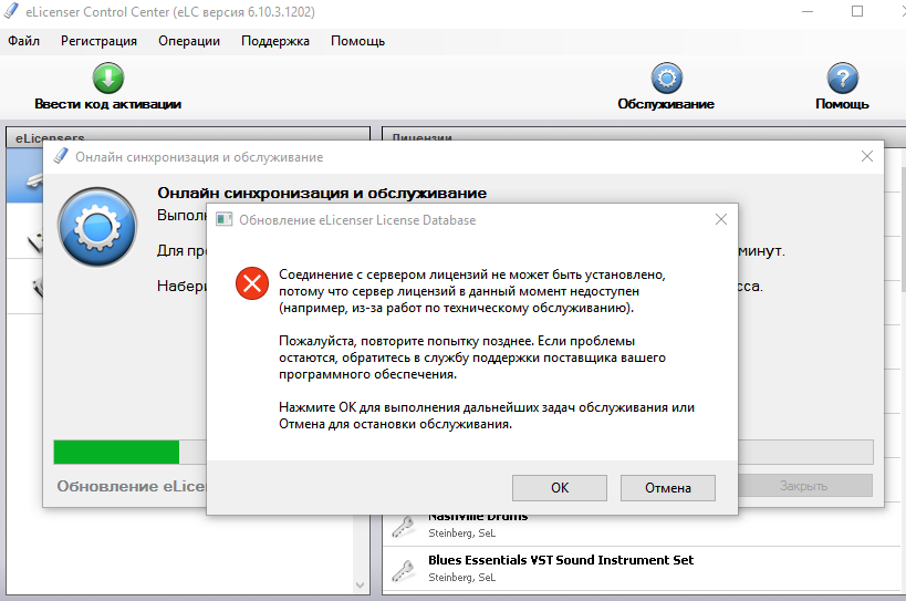Так же не получается произвести обслуживание через лицензер центр.