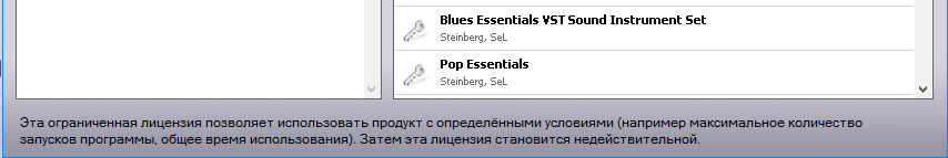 Обвел красным - это лицензия на любые плагины Steinberg. которые вы захотите попробывать перед покупкой, будут работать столько времени сколько осталось (указано около лицензии в часах и минутах) как время окончится, не купленые плагины Steinberg перестанут запускаться. К примеру вы можете запустить Nuendo перед покупкой.
