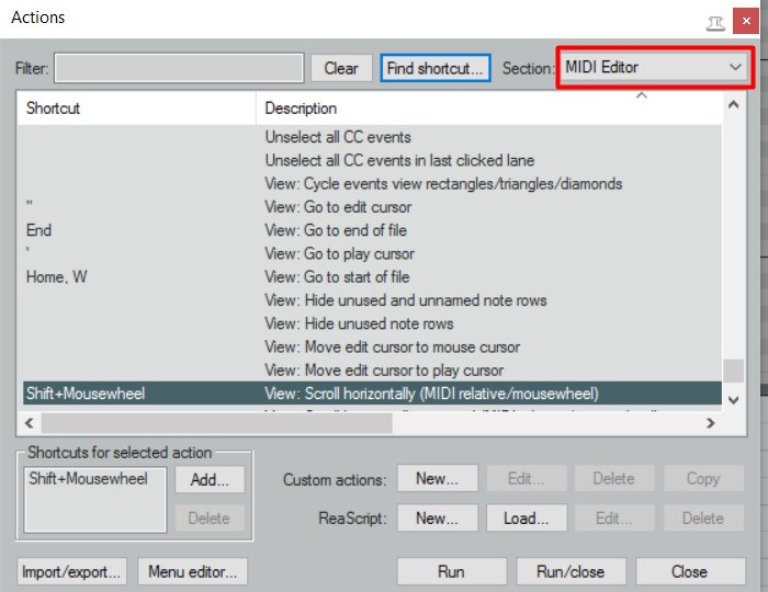 Может подскажите и по Zoom в пианоролл ? Вертикальный работает -Сtrl + колесо мышки,горизонтальный Alt + колесо мышки -нет.