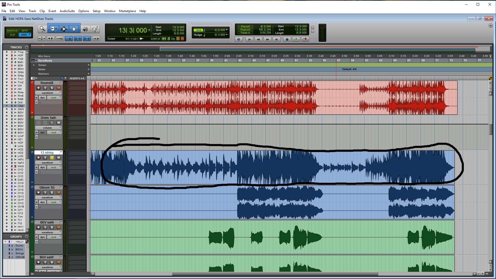 На фотке обведённый трек, 12 струнная гитара. Видно что уровни сигнала отличаются.