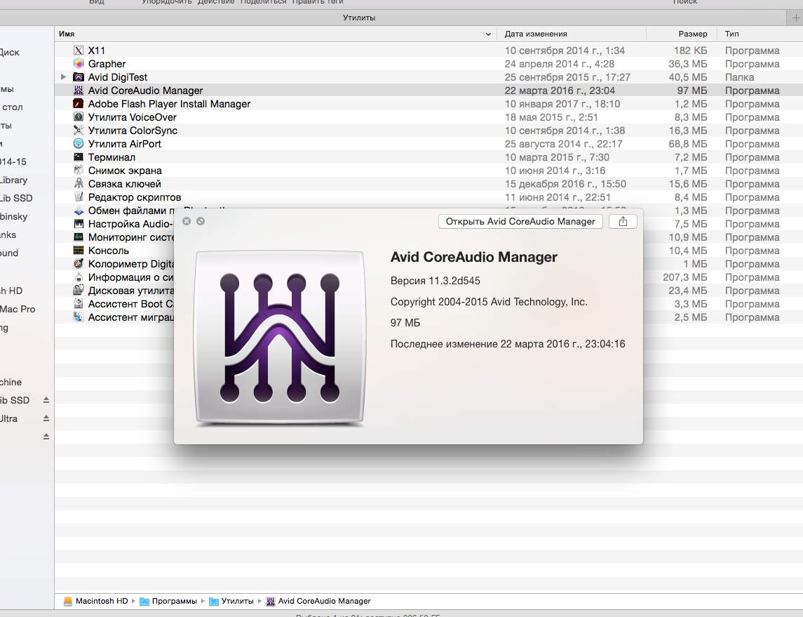 из системной папки Utility маленький файлик Avid CoreAudio Manager.app.? Огромное спасибо!