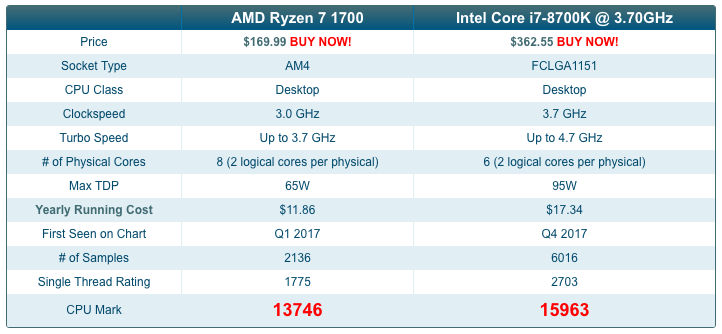 Поэтому выходит что 8700K пока предпочтительнее Райзена 1700