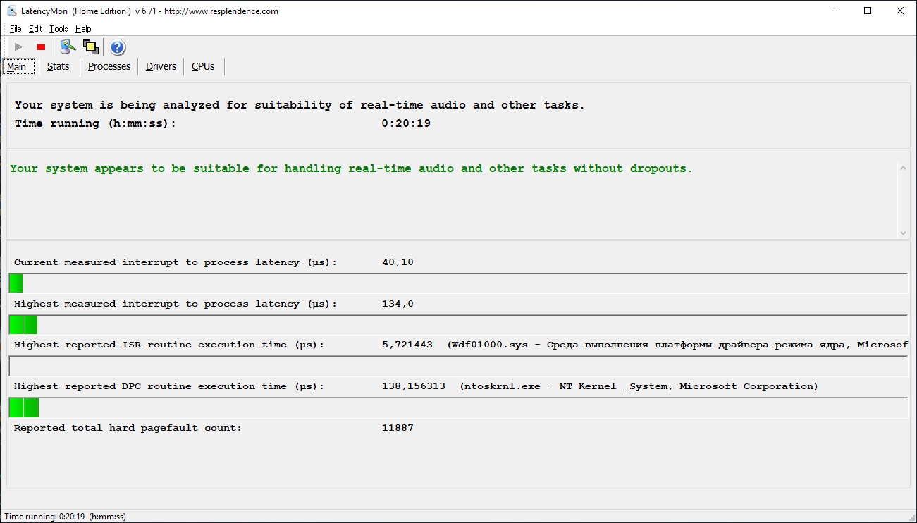 NOTE: some processes were hit by hard pagefaults. If these were programs producing audio, they are likely to interrupt the audio stream resulting in dropouts, clicks and pops. Check the Processes tab to see which programs were hit.