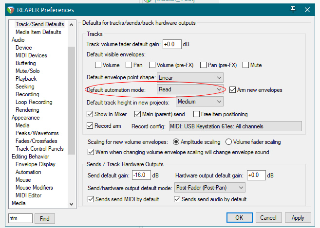 Давно хотел задать этот вопрос, но пытался понять сам. Так и не понял... Вопрос о автоматизации и функции её кнопки TR в Reaper. В Cubase это кнопка R, если автоматизация прописана и включена, эта кнопка выделена зелёным цветом и при скрытых линиях автоматизации, благодаря этому цвету, сразу видно, на каких треках она прописана.