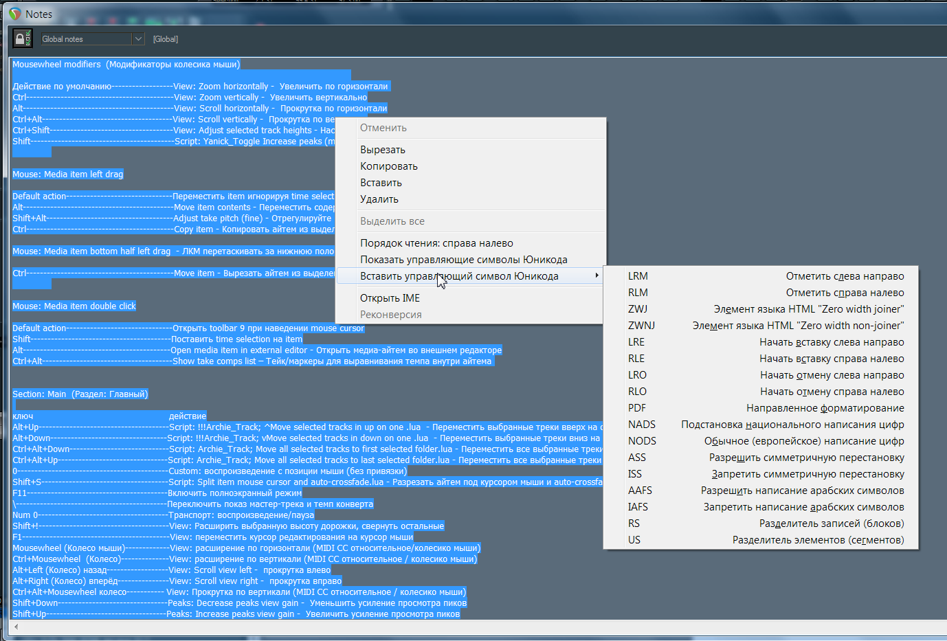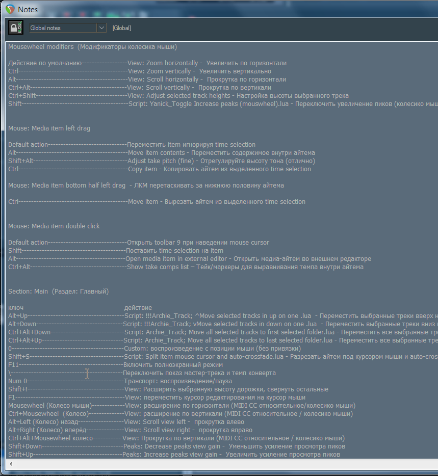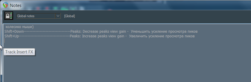 @YuriOl, Я по поводу блокнота в Рипере (Notes). дело такое: записал что то в Project Notes - всё сохраняется, удаляется и переписывается. Записал в Global Notes - начался какой то бардак... Какие то строчки удалились, какие то остались и всё что стираю и по новой записываю - не сохраняется, а после перезагрузки Рипера, открываются строчки, которые когда то (то есть - вчера) не удалялись.