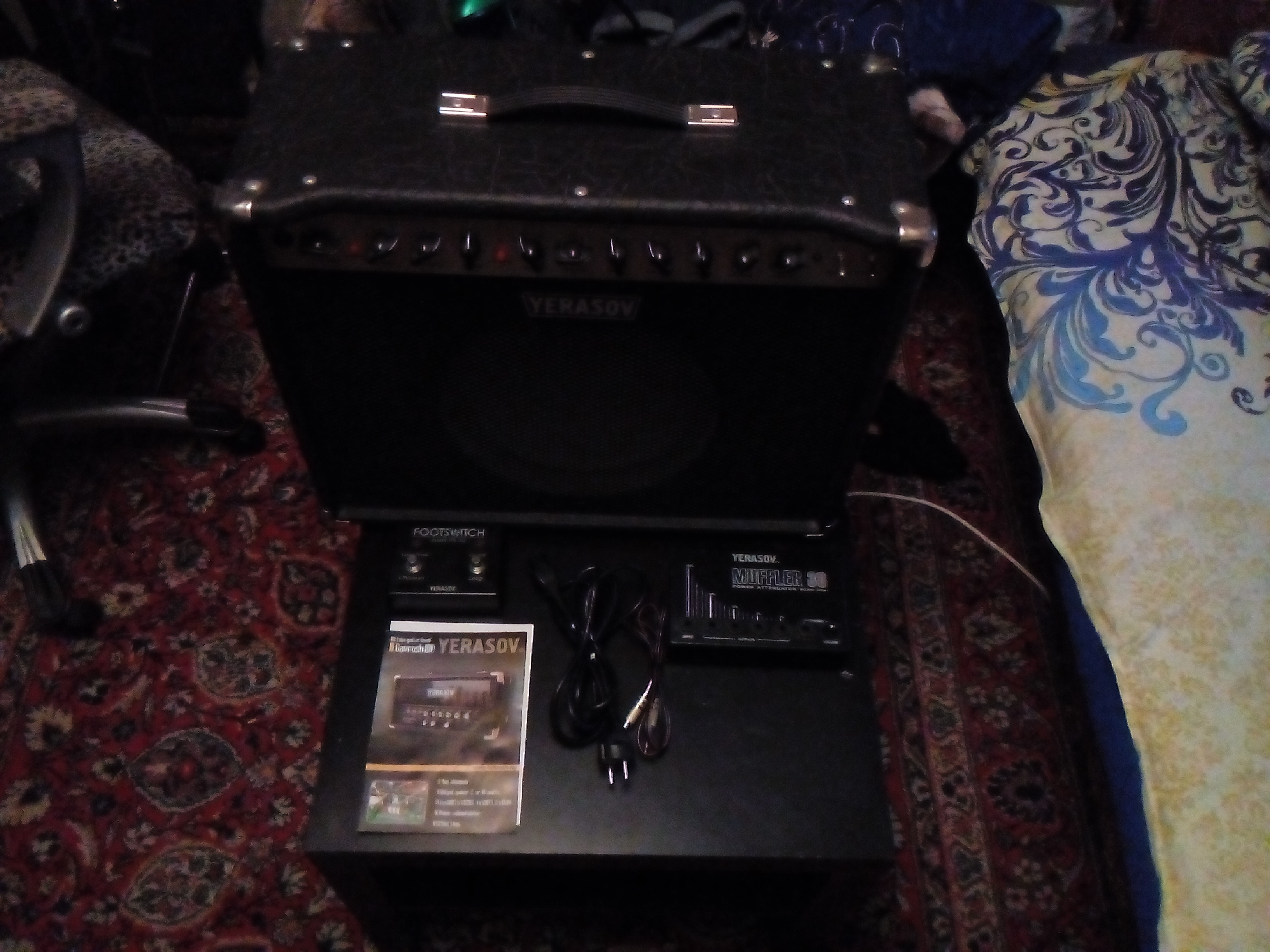 Полный комплект: сетевой шнур, футсвич, бумаги. В подарок отдам разработанный специально для этой линейки аттенюатор "Muffler 30", а так же провод для футсвича длиной 3.6 метра.