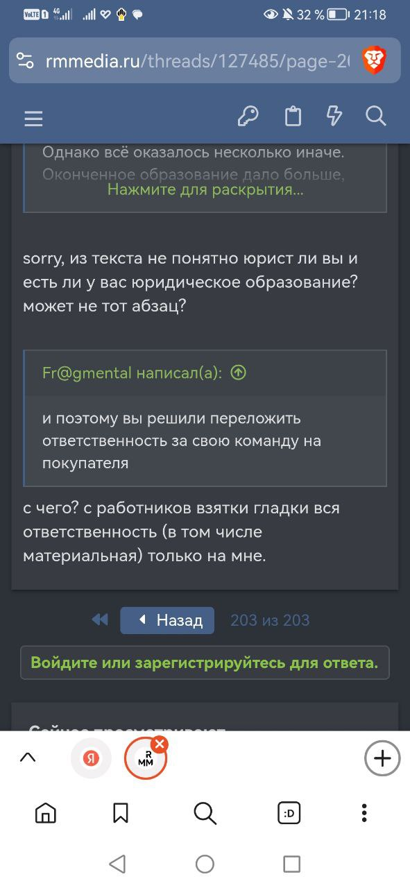 Вопрос в доверии. Если бы Вы мне с самого начала предложили отремонтировать, описали бы процесс, скидывали бы фотки производства, так, чтобы у меня складывалось впечатление, что Вы контролируете производство - я бы даже и не подумал, как тут особо страдающий жаждой лось сказал, - лезть в зал*пу. Не подумал бы. Я к Вам был очень, очень лояльно и позитивно настроен, мы же с Вами нормально общались ДО. Но потом что-то случилось, вы начали крутить хвостом, изворачиваться, и меня это очень напрягло.