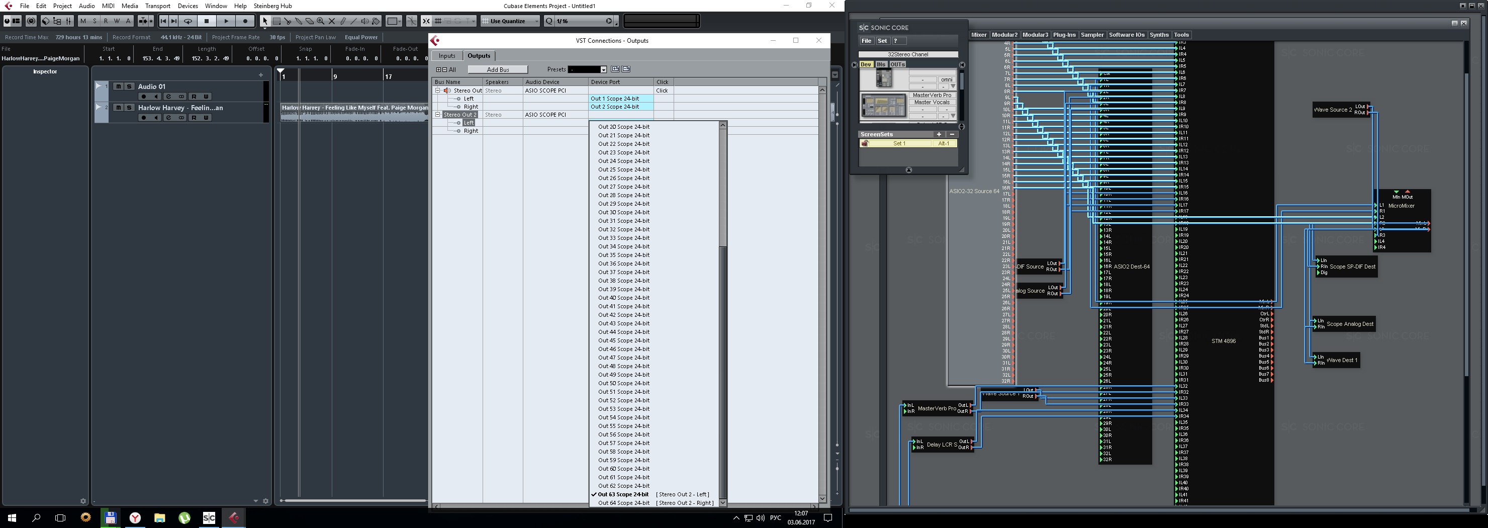 Суппорт вообще не принимайте всерьёз. На деле это никакой не суппорт вовсе. Они сами ничего не знают про платы Scope, так как суппорт принадлежит фирме Sonic Core, а платы и софт разрабатывала фирма CreamW@re, инженеры которой уволились после покупки этой фирмы фирмой Sonic Core. Новые инженеры кое-как допили софт под более мощные DSP процессоры и 64х битные операционные системы, но сделали это очень криво, через "костыли", которые не во всех функциях работают. Например не работают семплеры и патчи синтезаторов, в которых используется проигрывание семплов. Но они выпустили рэковое устройство Xite, которое стоит баснословных денег, но в нём работают все те же алгоритмы CreamW@re через кривые "костыли", и при этом количество выходов не расширяется. Например в одном из моих компьютеров с платами Scope стоят три платы Scope Professional, суммарное количество физических выходов которых 68 (8 портов ADAT оптики по 8 каналов каждый, 2 канала коаксиальный SPDIF и 2 канала аналоговых). На Xite такого добиться невозможно. Всё его преимущество в том, что у него вычислительная мощность равна, если верить рекламе, мощности десяти плат Scope Professional. Но на практике даже DSP ресурсы трёх плат Scope Professional, которые могут быть установлены вместе и работать как одна система, исчерпать очень трудно - это надо специально постараться, а в реальной работе вряд-ли когда-нибудь возникнет их нехватка.