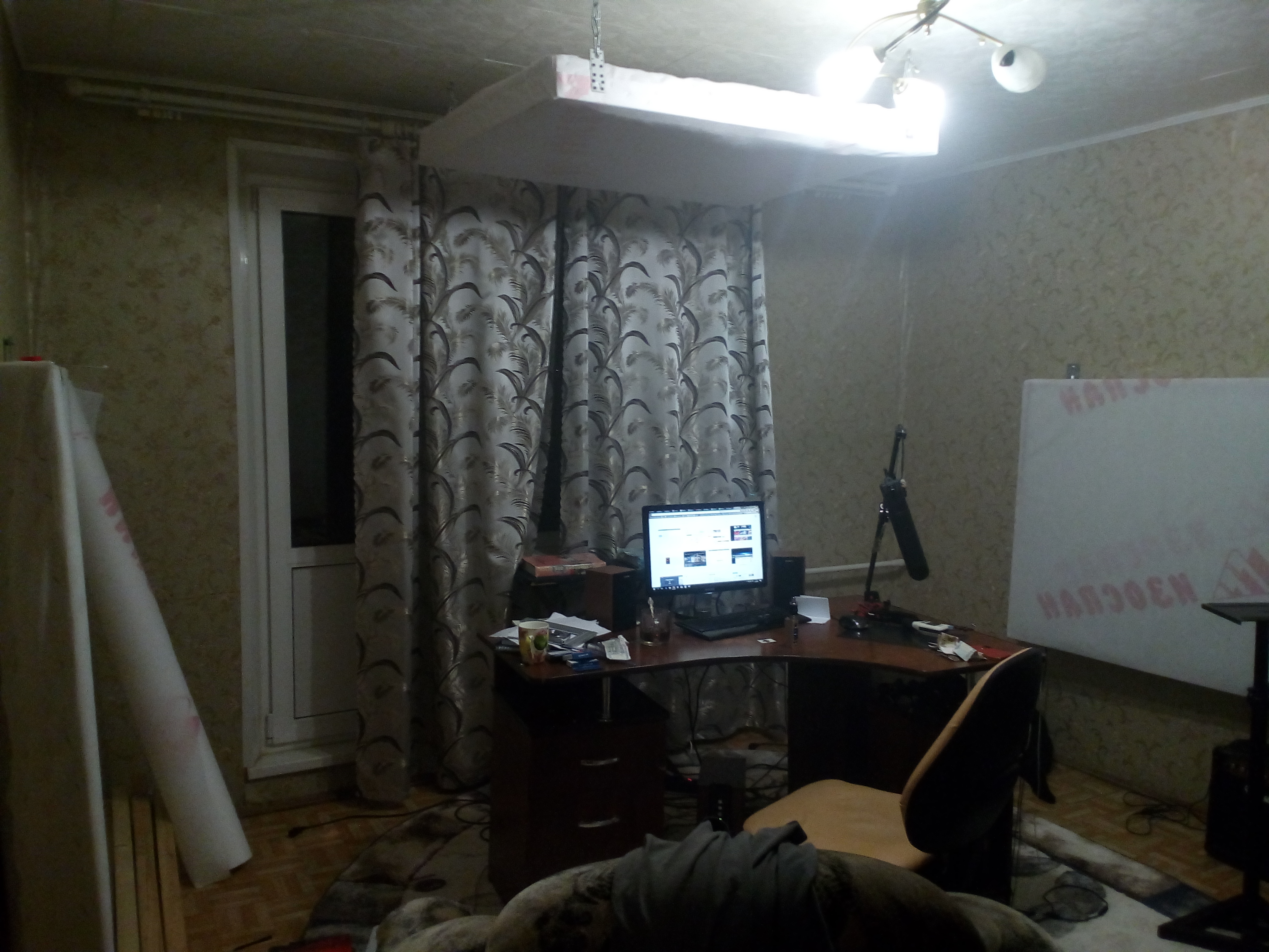 Повесил их побокам, на потолок, на заднюю стену. Жду плотные бархатные шторы + тюль. Так как мои шторы тонковаты и слишком гладкие.