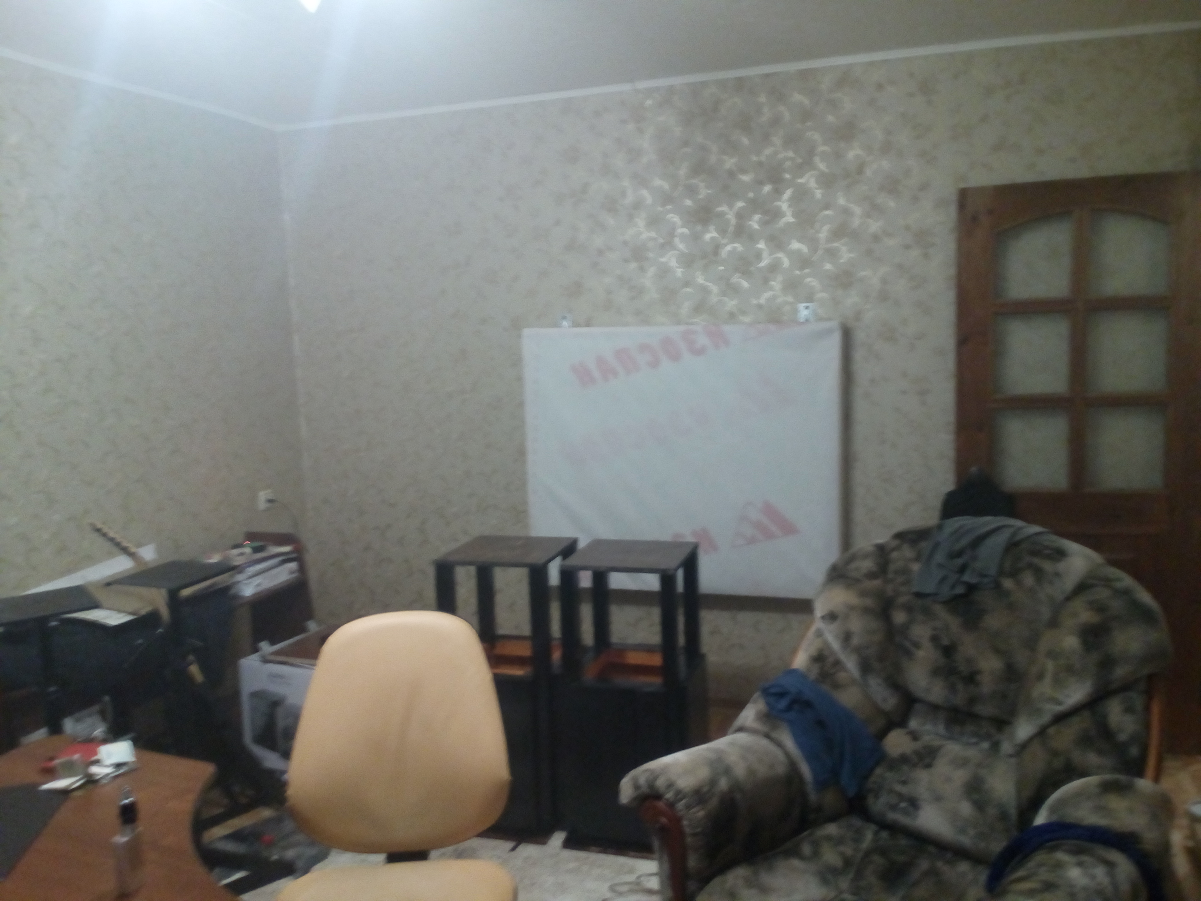 4. Главная отражающая стена задняя, а потому там должно быть много поглотителя. Если я правильно понял - там входная дверь в углу? Это печально...надо будет сделать вторую дверь-ловушку. Как? От фантазии зависит, чем толще слой ваты тем лучше, что конечно создаст дополнительные сложности при пользовании дверью... Я отрезал позади моего стола дома (комната 3 х 5) кусок глубиной почти метр, который превратил в сплошную ловушку, со второй дверью-панелью (дверь в задней стене). В конечном итоге из 15 м.кв. у меня осталось метров 7-8... короче на стол и стул...ибо боковые стены тоже поглощающие в виде трапеции. Но при столь малом помещении поглотителя много не бывает...