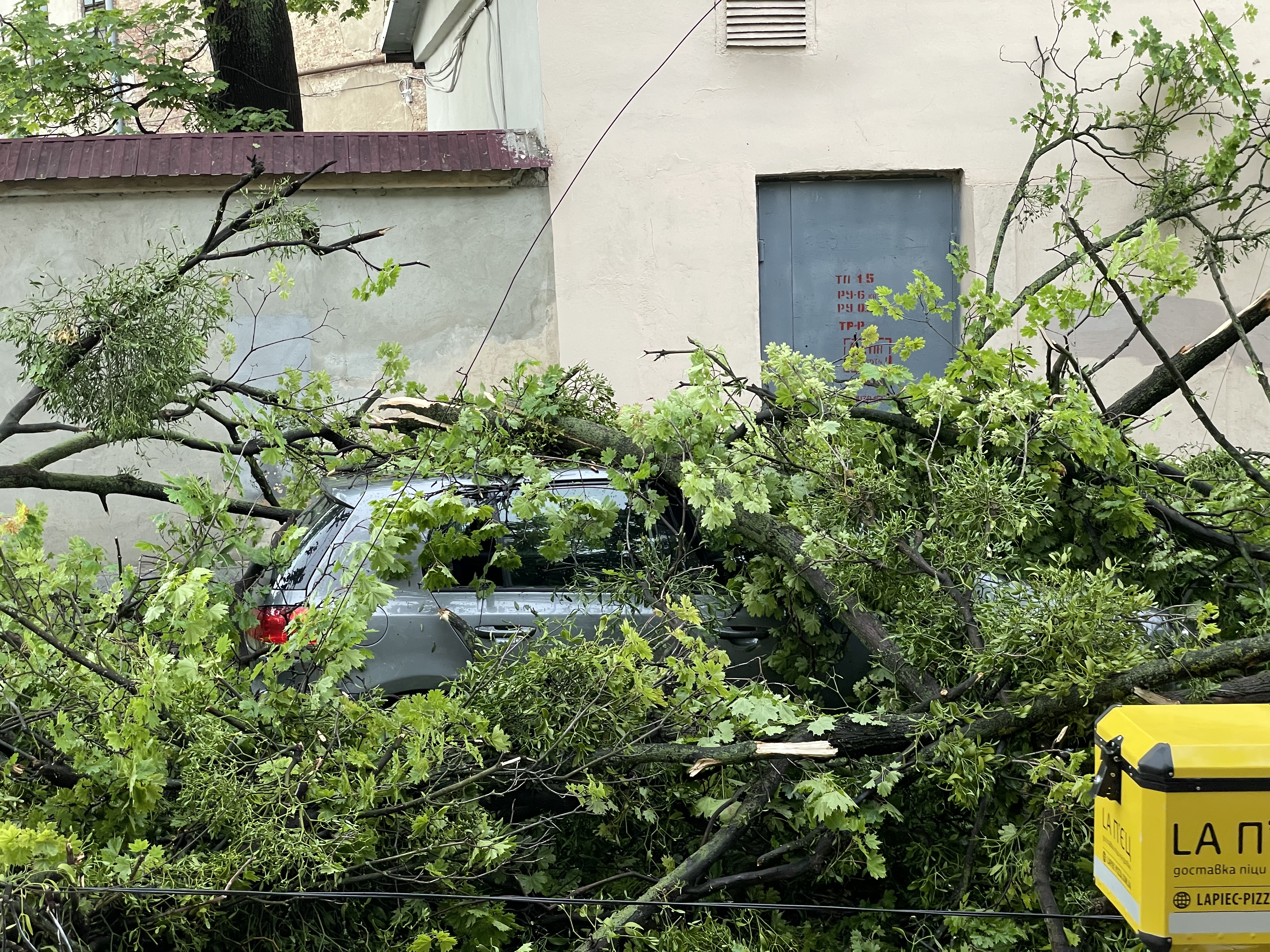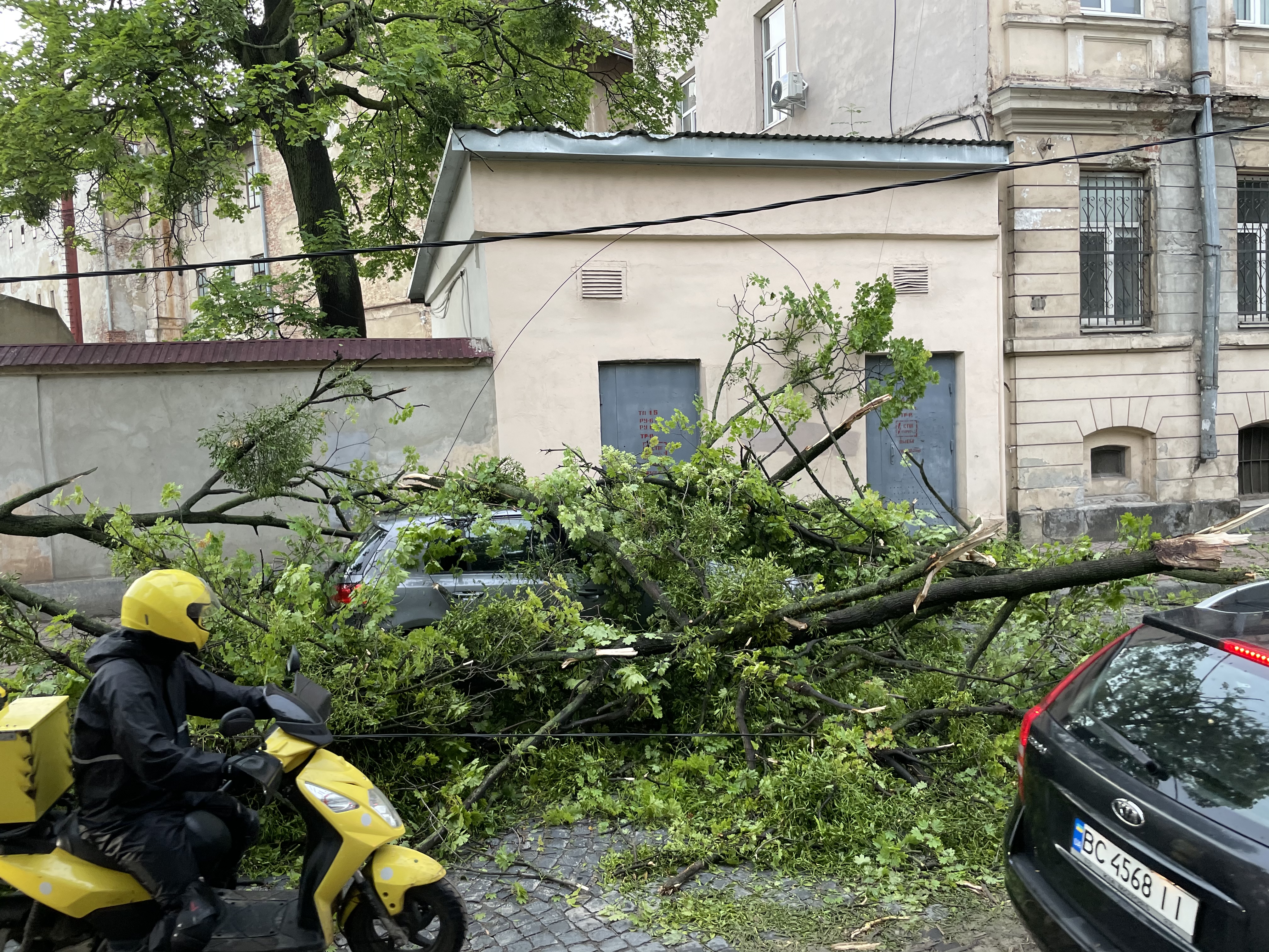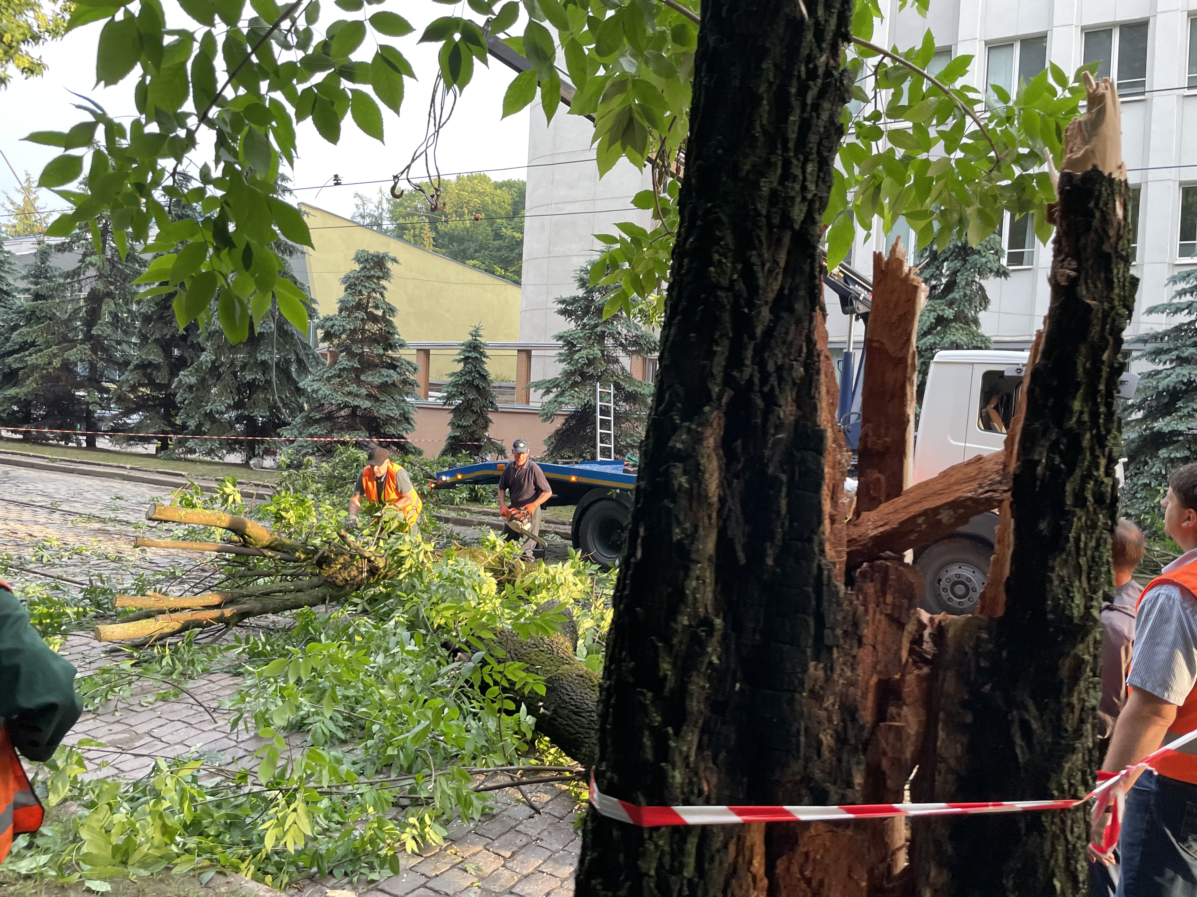 Видел фото с той же улицы в день урагана - там такое на каждом шагу, наверное, половину деревьев повалило. А я там неделю назад был - по всему городу видны последчствия. И в Карпатах лес повален, много где даже туристические тропы стали труднопроходимыми.Вот, три недели назад во Львове был -