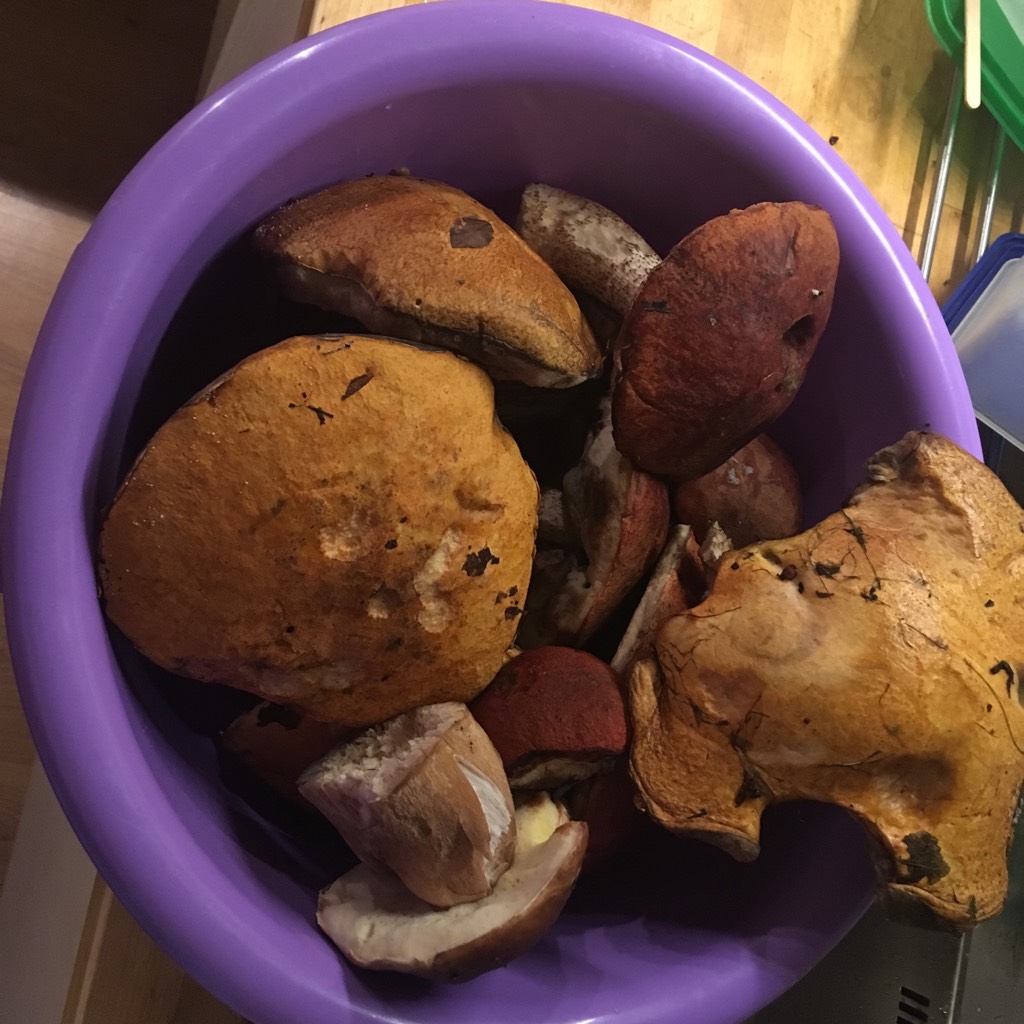 Был в выходные в Тверской области, где обычно набирал весьма прилично, в этот раз очень скромно: штук 5 белых, пару подосиновых, штук 6-8 подберезовиков + лисички - ну на жареху вроде нормально!