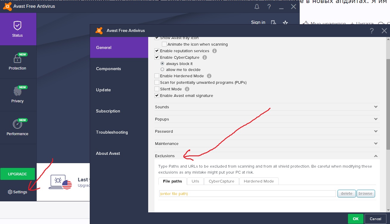 Ребята, у кого стоит Avast, подскажите пожалуйста, вы с таким сталкивались? Как там сделать так, чтобы определенные программы он вообще не трогал?