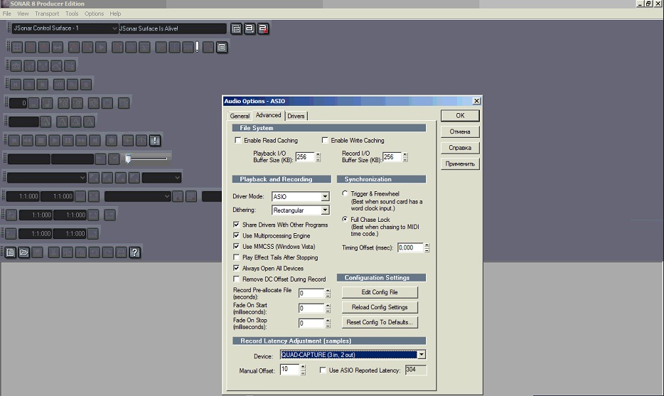 Здравствуйте вновь! Я слышал, что неровность при записи барабанов возникает из-за не настроенной синхронизации МИДИ. Пытался включить ее, ставил соответствующий флажок на вкладе "Options", но после этого "Сонар" вообще переставал нормально работать: ни включались ни запись, ни воспроизведение. Что вы могли бы посоветовать поводу того, как включить синхронизацию, и может ли она действительно решить проблему неровности МИДИ при записи?
