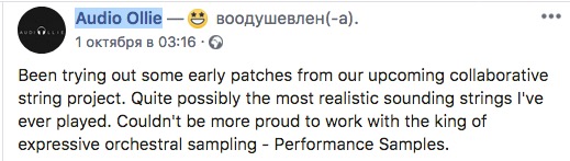 Если наших пенсионэров не свернут с праведного пути (а такие подозрения, в связи с навязыванием им явно заинтересованных сторон всякой хрени типа барабасов с целью задержать их прорыв во что бы то ни стало, у меня есть :cool:), это будет самая юзабельная струнная библа за последние 15 лет. Челлы легато вообще просто чудеса творят.. Когда контроллёры по ним пишу у меня иногда явное дежавю по живаго возникает..)) Такого со мной не бывает ни с одной из библ). Побольше бы слоёв, ну да не обязательно (если юзать и CC1 и CC11). Вторые скрипки пока сырые, конечно, но сольные тоже чудеса творят, блин.. Продублировал партию первых хс этими двумя сольными и сижу думаю - а всё.. Больше ничего добавлять не нуна.) (но всё-равно добавил сольную венскую)). По легато перформансы бьют всех, включая и венцев и иствест.