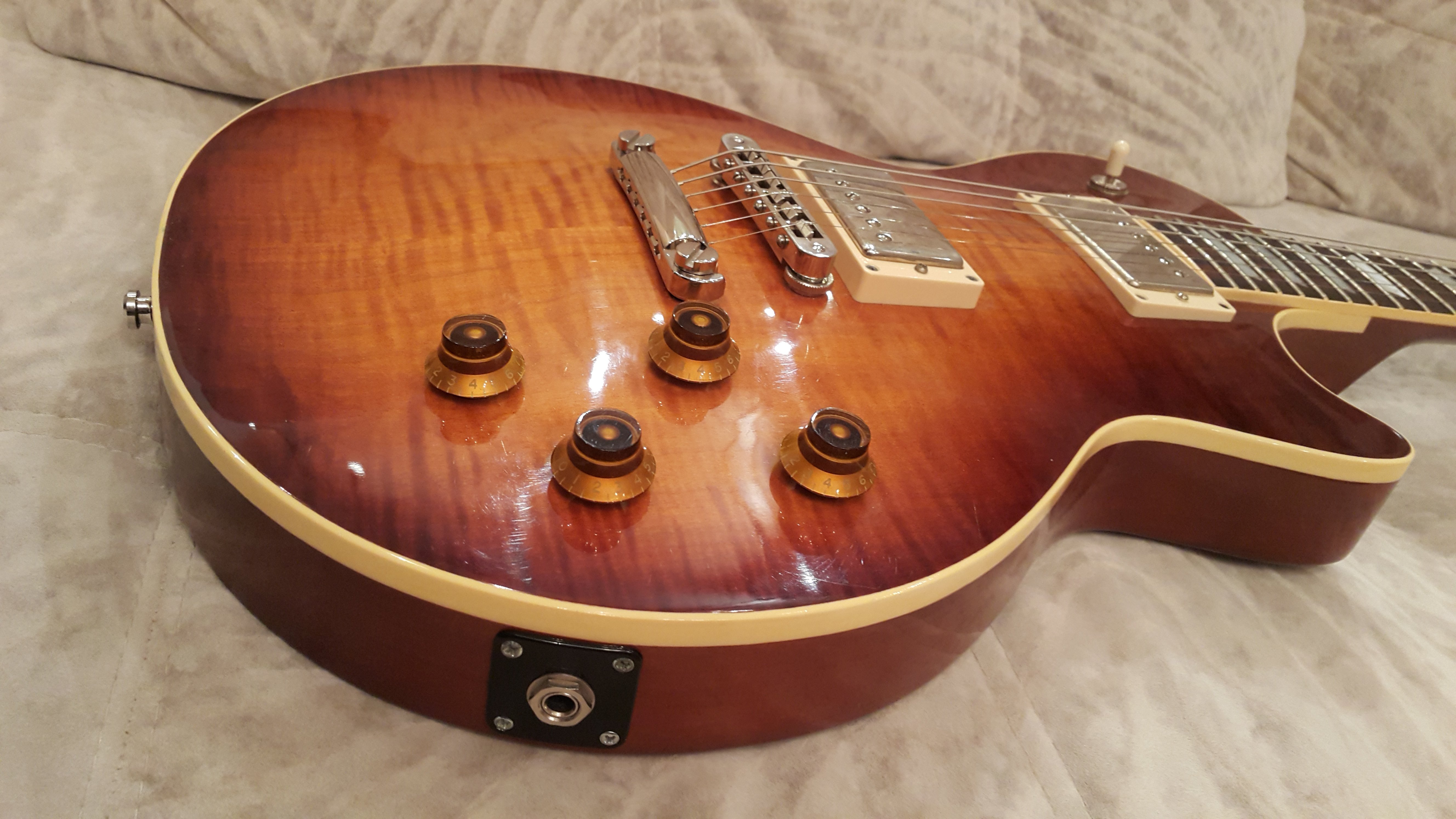 Это Heritage H-150 2006г. Заказан в США. Установлены датчики SD SH-1 ('59), "антабки" для стреплоков шаллер, но могу вернуть оригинальные.