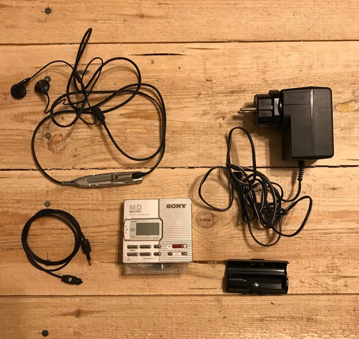 Плеер с функцией записи, оптический кабель в комплекте. Пультик рабочий, наушники родные. Нет встроенного аккумулятора в комплекте. Но есть адаптер на 1 батарейку АА.