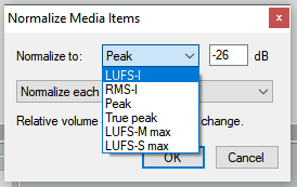 В Reaper можно на мастер кинуть JS Loudness Meter Peak/RMS/LUFs