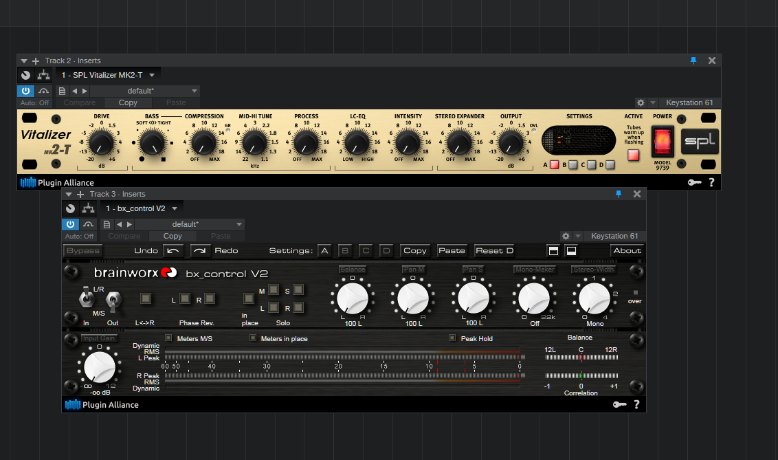 именно па не видит одновременно вст2 и вст3, сами плагины загружает, но сброшены настройки даже не по дефолту а просто в одну сторону)@DoTheBeat, А сами-то плагины хоть загружает, без настроек? Насколько мне помнится, у PA VST2 и VST3 виделись в S1 как разные плагины (т.е. в браузере виделись обе версии одновременно), тогда скорей всего никак, только возвращать VST2 и доделывать старые проекты на них. Проверить не могу, т.к. давно не ставлю/вычистил все VST2, у которых были VST3 аналоги.