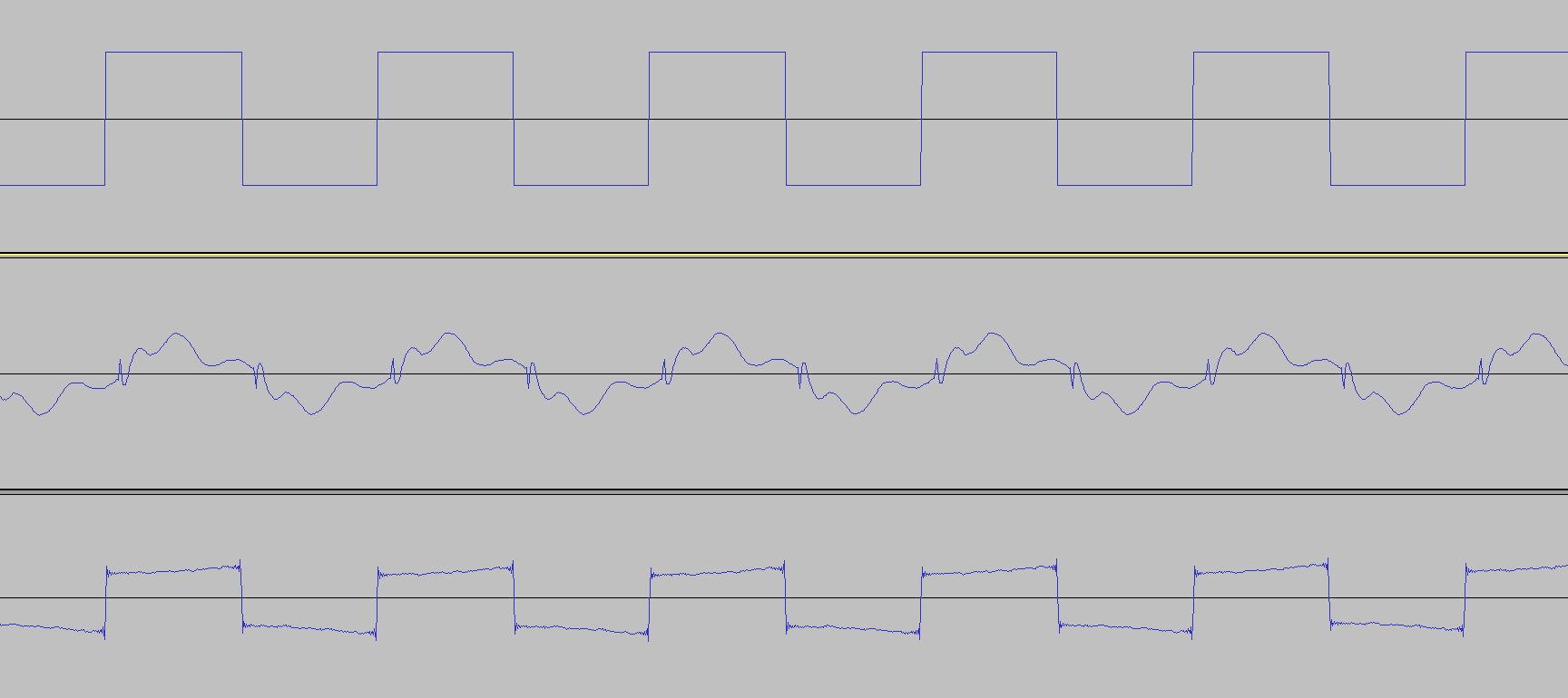 Выше 1000 гц еще возможно... Но не на 100 гц , там трапеция ...Не помню, на какой частоте меандра я это записывал, но у меня получалось так:Посмотреть вложение 145566