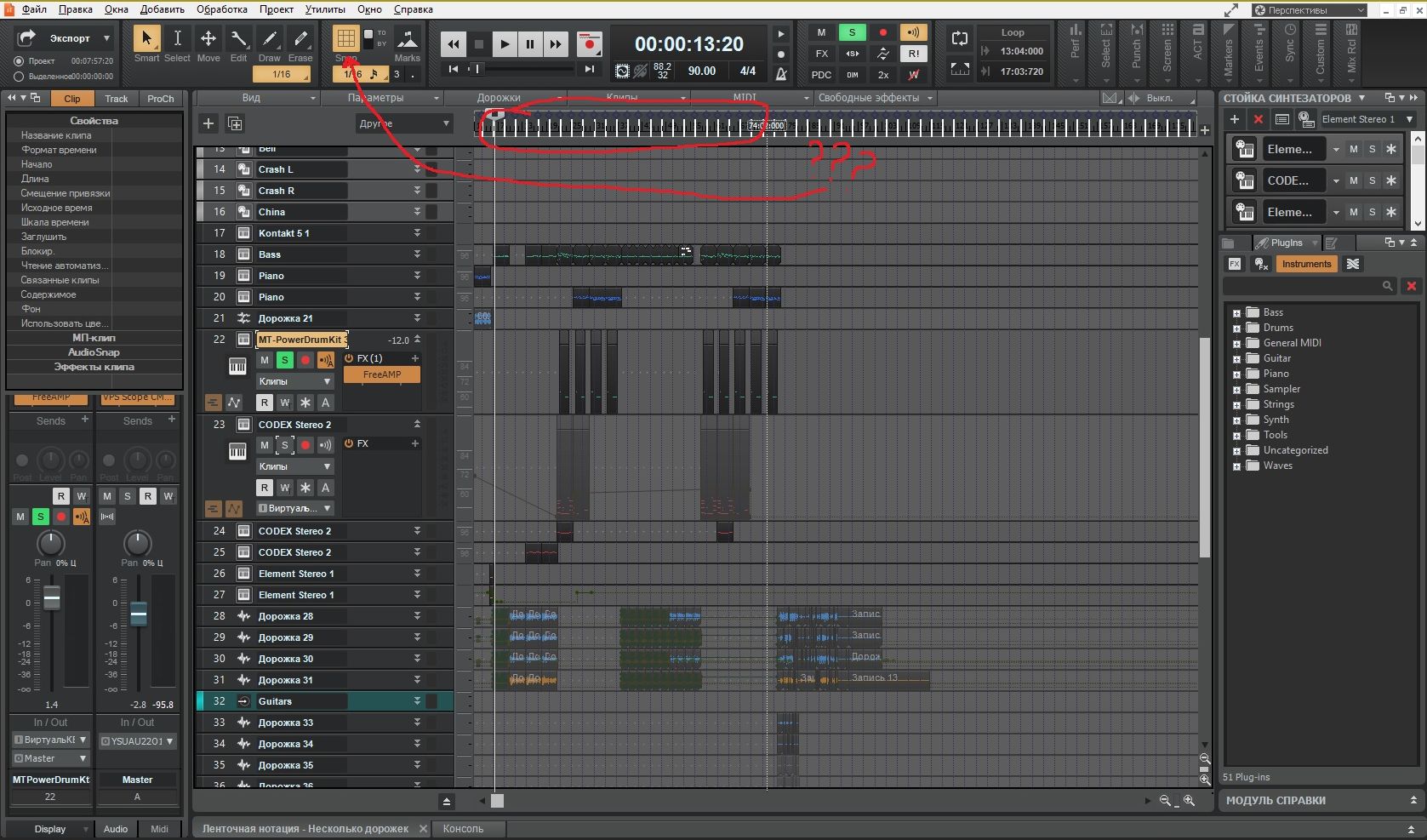 А еще столкнулся с такой проблемой. Пытаюсь установить drum map на дорожку. Происходит нечто невероятное: при установке карты ударных на дорожке автоматически заменяется барабанная установка на синтезатор, который установлен на другой дорожке. При попытке вернуть нужный инструмент он перескакивает на ту дорожку, с которой прилетел синтезатор. Синтезатор играет партию ударных, а ударные партию синтезатора. В итоге ни карта не ставится, ни инструменты не играют свою партию. Подробнее в картинках ниже. Причем в новом проекте, если сразу кинуть на дорожку барабаны, то все играет и карта ставится. Видать что-то намудрил с коммутацией. Уже и не знаю, что попробовать.