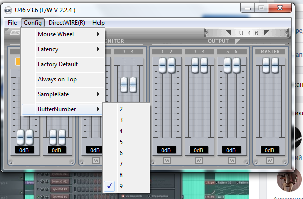 При этом если я выбираю буфер номер 3 - 9, например, то могу выставлять размер хоть 48, звук будет нормальный и задержка минимальной.