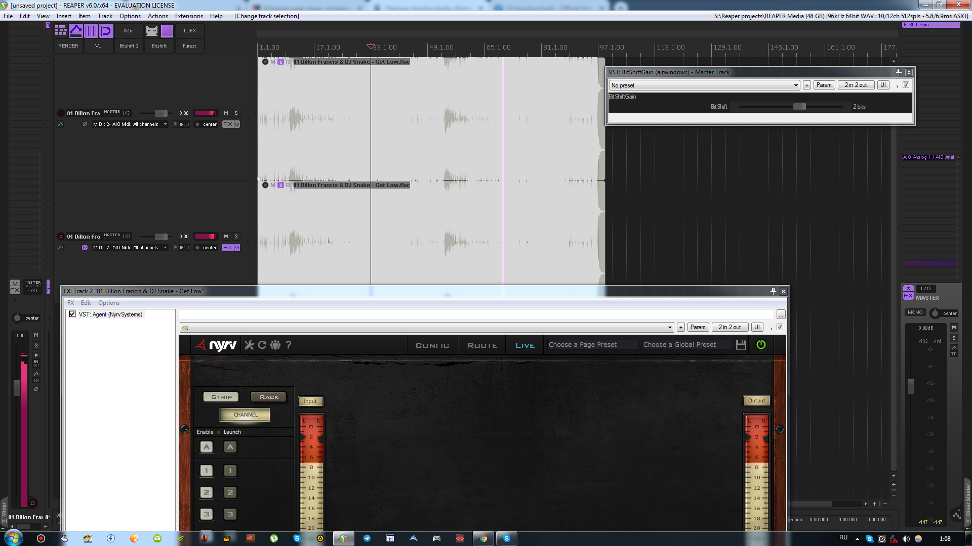 А ты пробовал не измерителями смотреть, а услышать этот транкейт? Например, убрать 64-х битными плагинами громкость трека децибел на 180, направить этот трек в группу и в ней поднять громкость на те же 180 дб. А потом вставить в середину этой цепочки 32-х битный плагин и послушать, что будет с ним и без него? А потом ещё этот дитеринг эйрвиндовс поставить и с ним послушать?