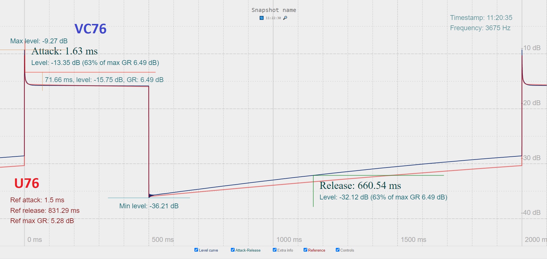 Сравнение кривых работы компрессора от NI и Петерика, если кому интересно. Красная, это Opto3a (в режиме 2а), синяя NI/Softube.
