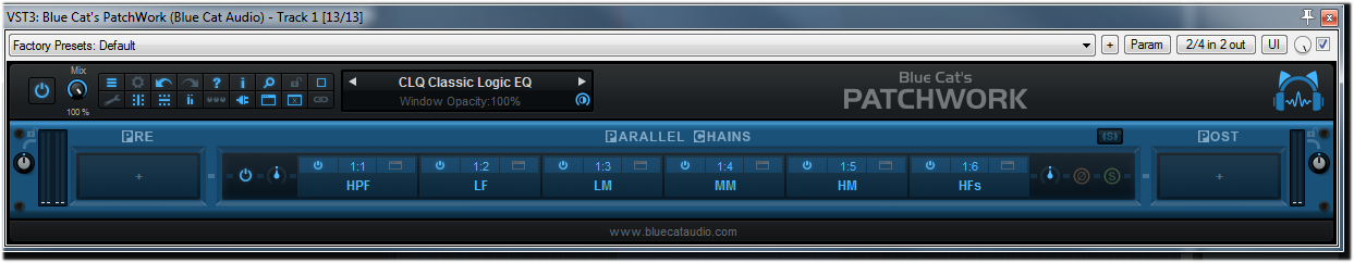 Там же есть PRE слоты, сами параллельные цепочки с режимами Average и Summing, а также Post слоты.