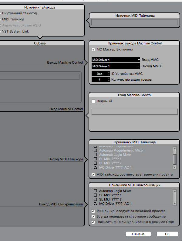 инхронизировал CUBASE 9.5 и LOGIC PRO X через IAC шину на MAC