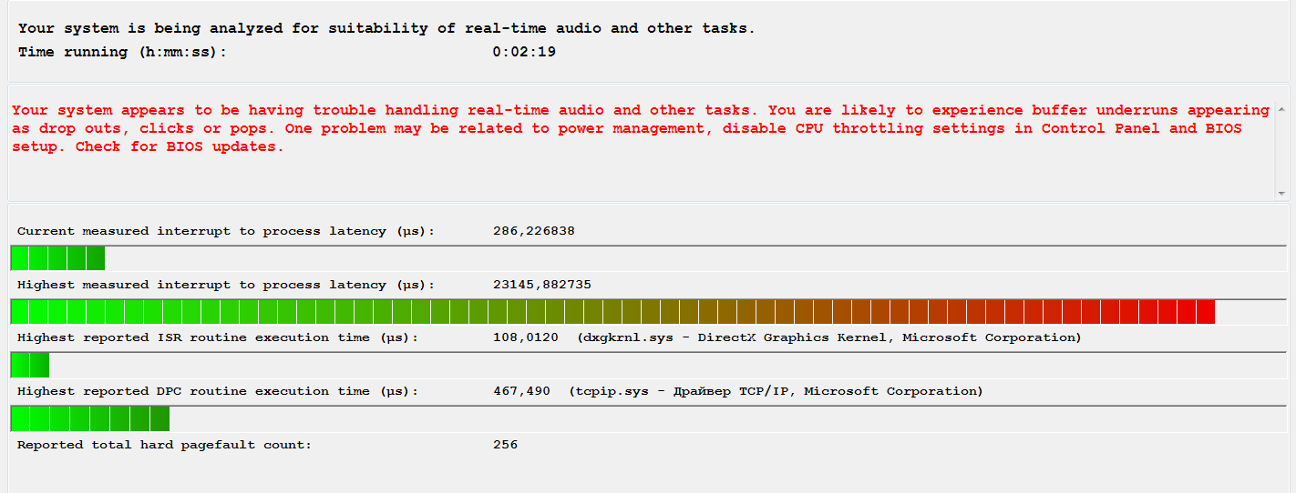 Всё тоже самое. LatencyMon в руки и вперёд.прошу прощения, что поднимаю достаточно старую тему, но у меня суть немножко отличается (возможно, на первый взгляд)